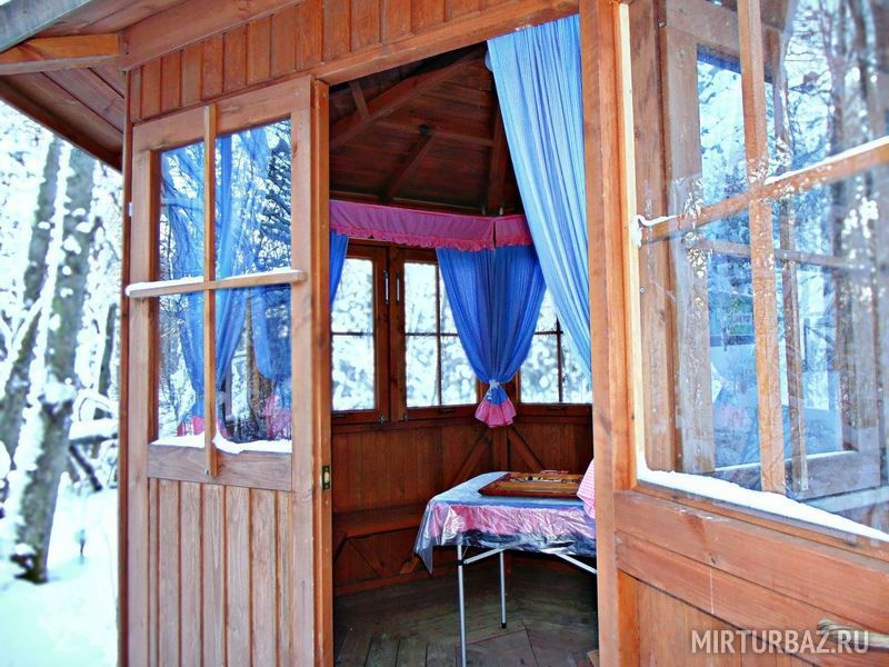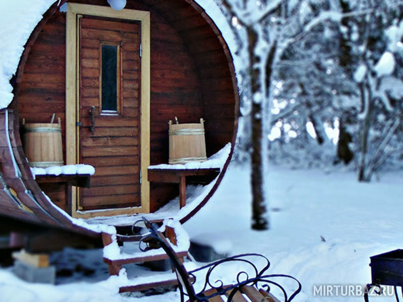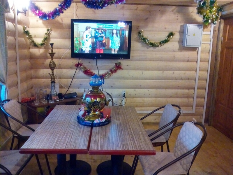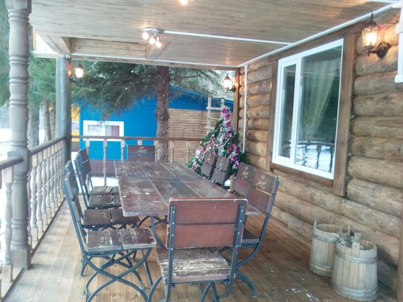 Банный комплекс включает в себя парную на 5 человек, место для переодевания, место для отдыха, туалет, телевизор, самовар, душевую, фитобочку. Веранда на 8 человек.