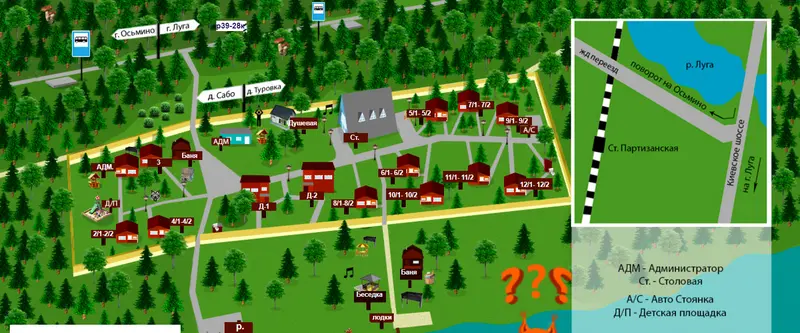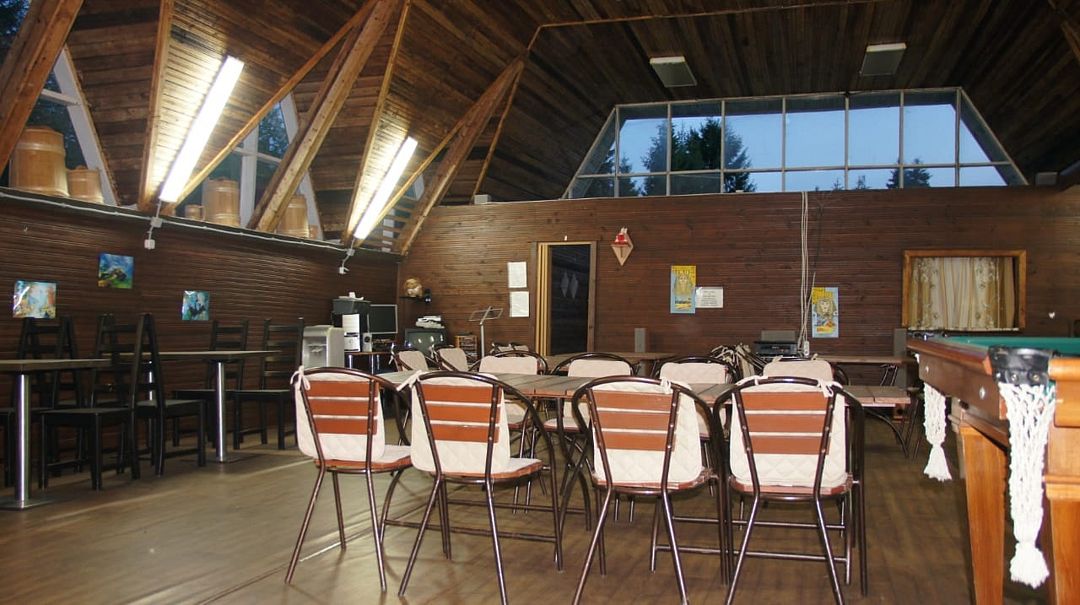 Дополнительные услуги: - "Кухня - столовая" рассчитана на 50 посадочных мест. Имеет зону для приготовления еды (газ), зону для посуды (3 раковины, горячая вода). - "Душевой комплекс". Имеет 2 душевые кабины, 3 раковины, а также стиральную машину. *Дополнительная плата за стоянку машины 100 руб./сутки.