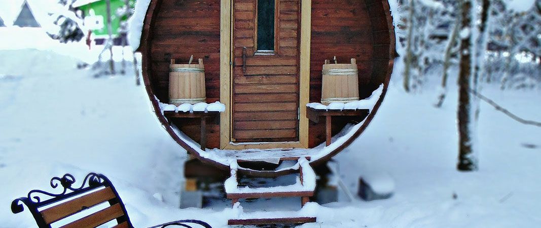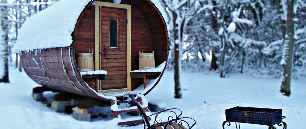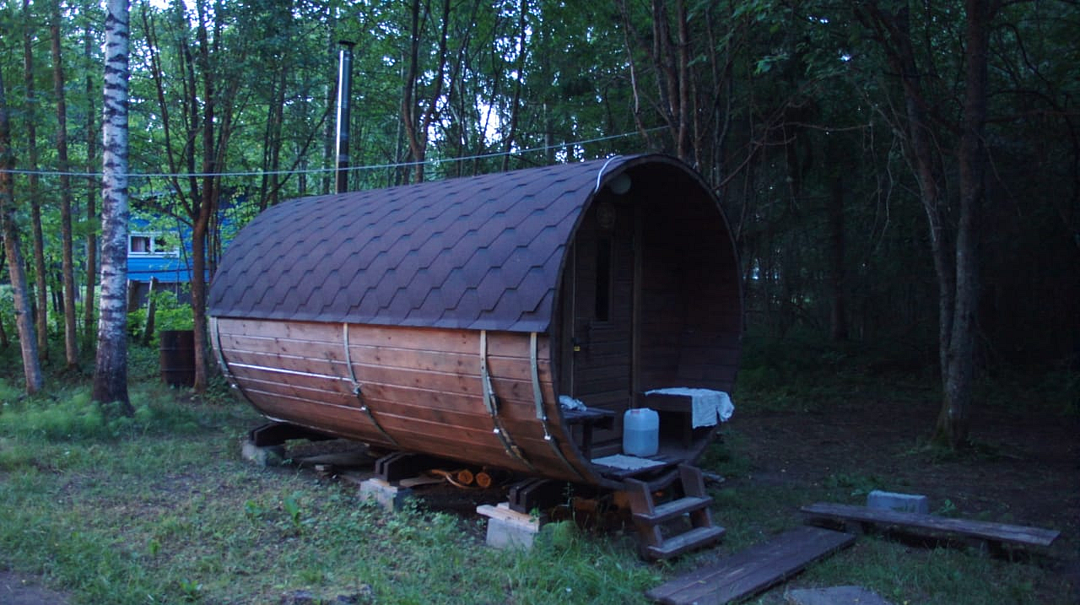 Баня бочка на берегу озера