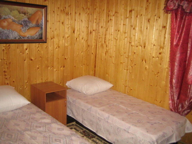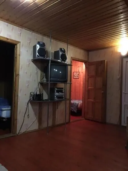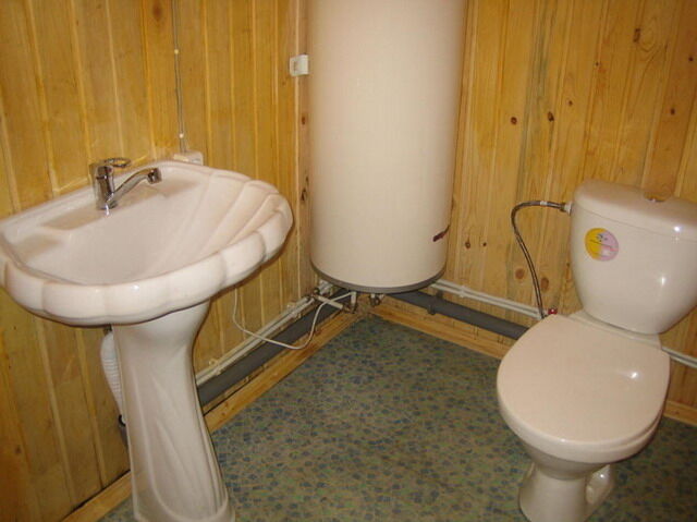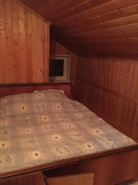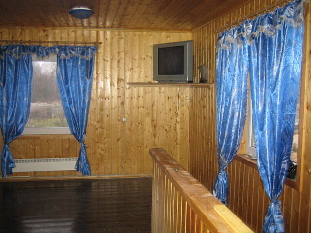 На первом этаже большая терраса (около 40 кв.м.), небольшой холл с комнатой отдыха (диван, два кресла и стол), баня с русской парной, душ. На втором этаже, гостевая с двуспальным диваном, две спальни по 8 кв.м. каждая, в 1-й спальне двуспальная кровать, во 2-й – две односпальные кровати. Санузел, электрический водонагреватель на 100 литров.