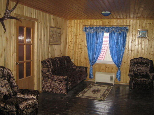На первом этаже размещены помещения для обслуживающего персонала. На втором этаже, куда ведет отдельный вход, большая гостиная (около 50 кв.м.) с оборудованной кухней (мебель, газ.плита, холодильник, микроволновая печь, посуда). В гостиной двуспальный диван, 2 кресла, телевизор, DVD-караоке, музыкальный центр. Большой балкон (около 10 кв.м.) с видом на реку, дубовые и липовые аллеи. Три спальни с двуспальными и односпальными кроватями каждая, две спальни с двумя односпальными кроватями каждая. Санузел с душевой кабиной, электрический водонагреватель на 150 литров.