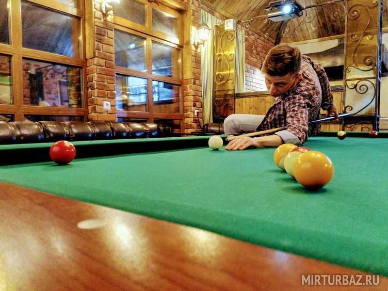 Помимо настольных игр имеется бильярдный стол для игры в пул. Поиграть в который сможет даже новичок, благодаря памятки с правилами и подсказкам.