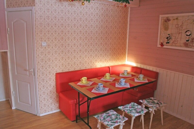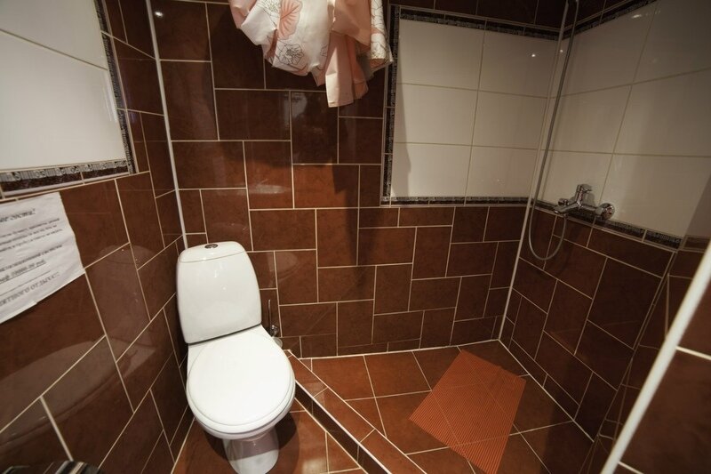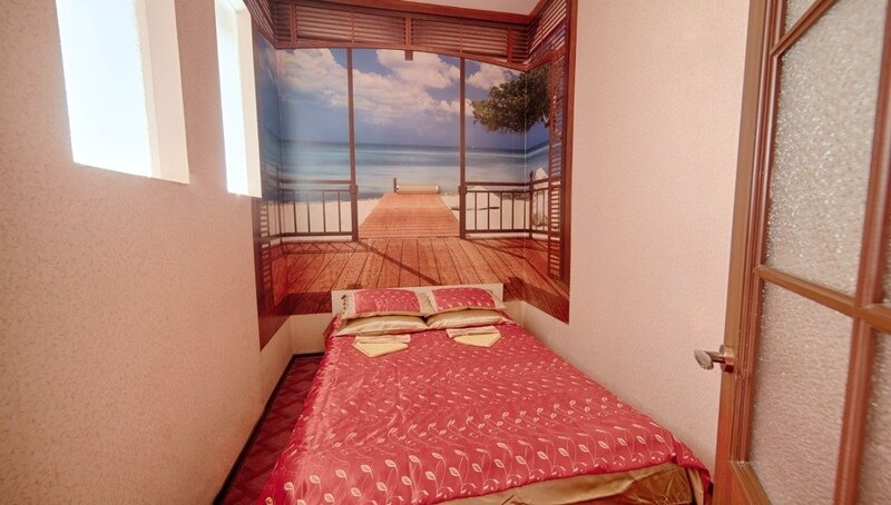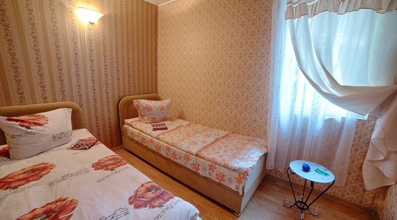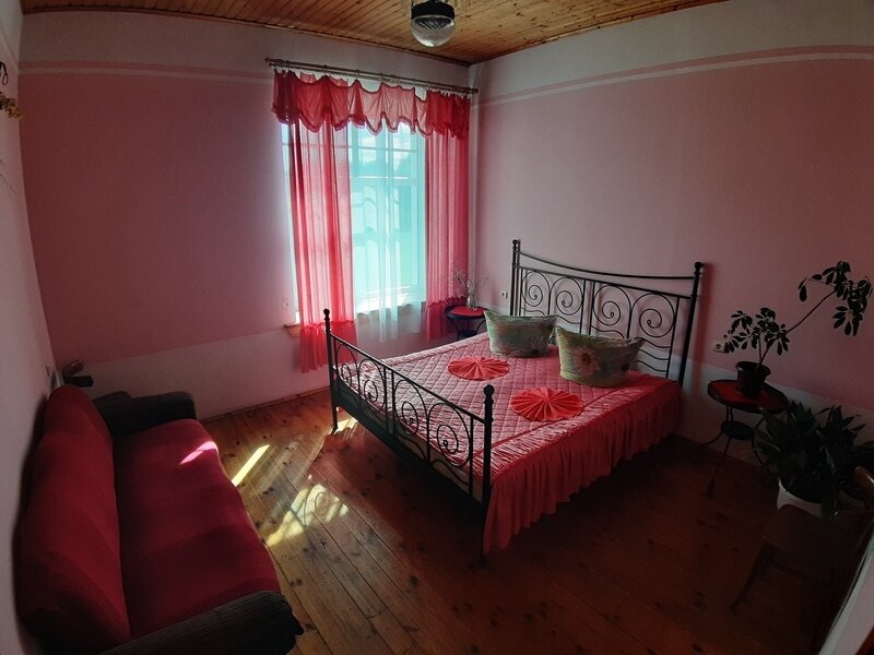 Номер розовый, однокомнатный на 2 человека + 1 доп. место, санузел общий на 2 номера.