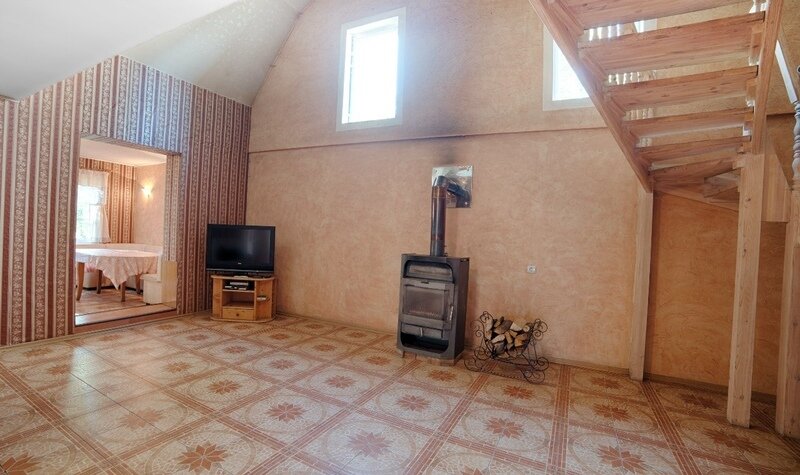 Каждый дом оборудован водоснабжением, кухней и всем необходимым для комфортного проживания. Вода берется из глубокого скважины и пригодна для питья. Отопление осуществляется с помощью дров и электричества. Возможно размещение как в отдельном доме, так и аренда всего комплекса целиком.