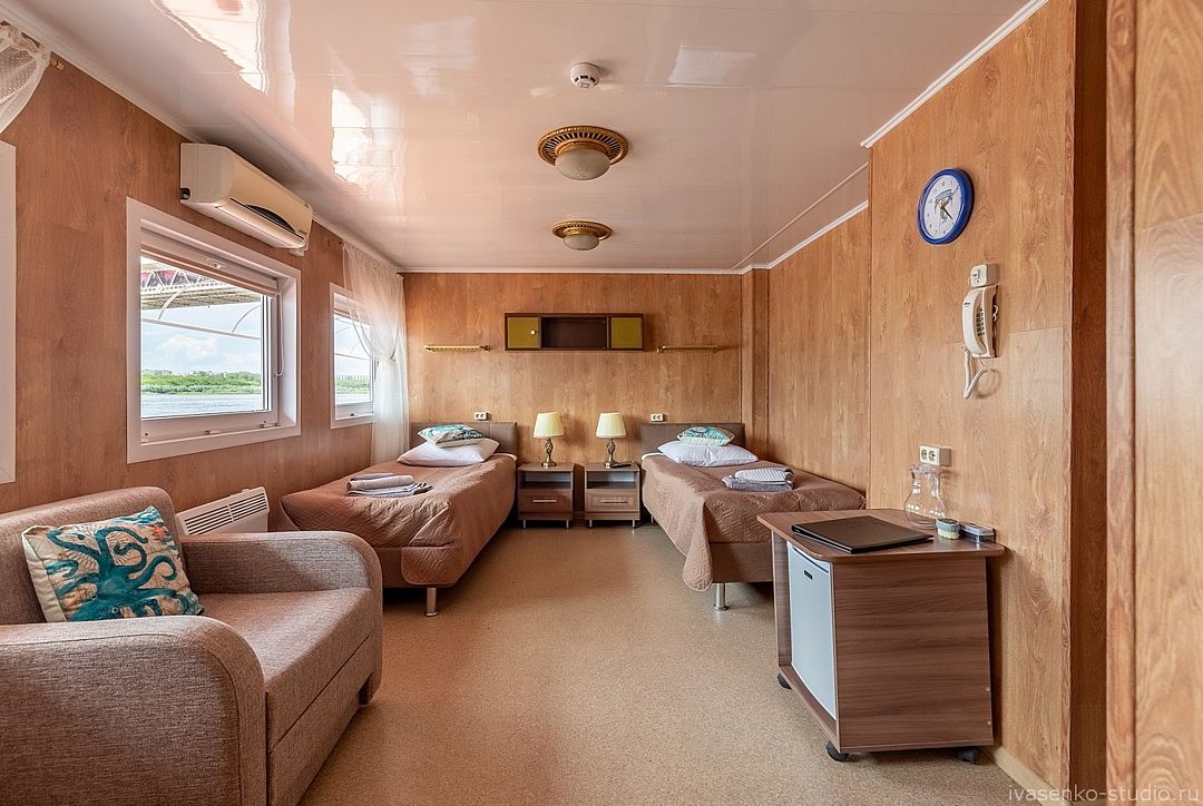 Оптимальный выбор для путешественников - однокомнатные комфортабельные номера, расположены на Главной и Нижней палубах. Уютные площади, удобное расположение мебели позволяет путешественникам насладиться отдыхом на нашем Аква Отеле, не переплачивая лишние деньги.