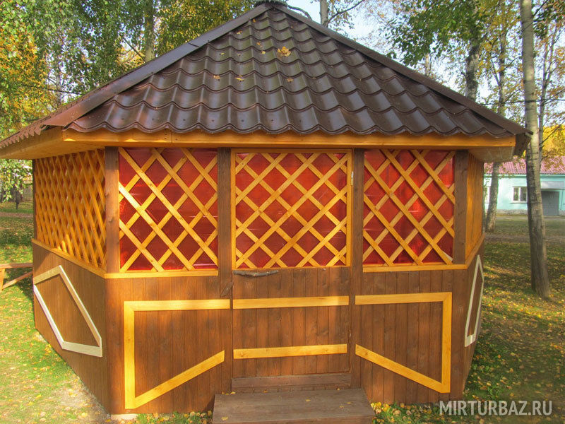 На территории дома отдыха "Сокол" имеется уютная деревянная беседка, которая идеально подходит для отдыха дружной компанией на свежем воздухе.