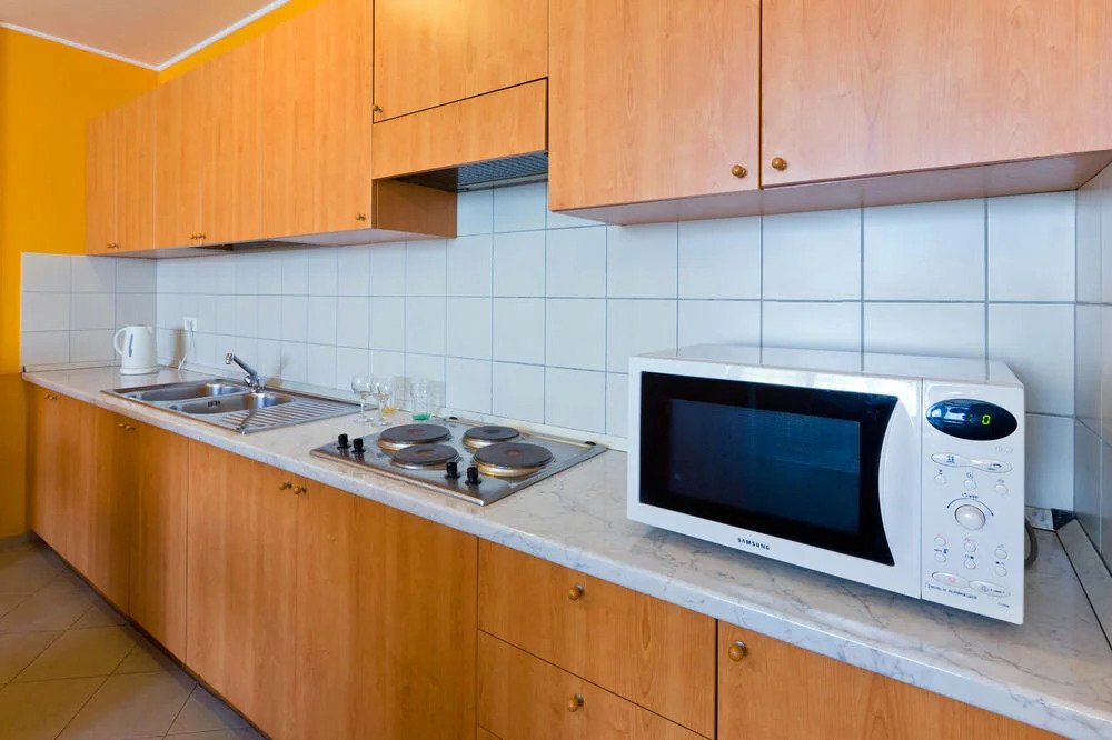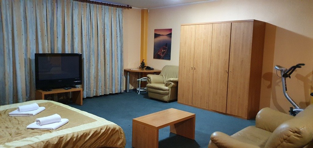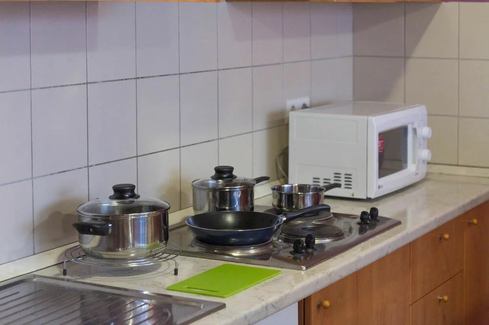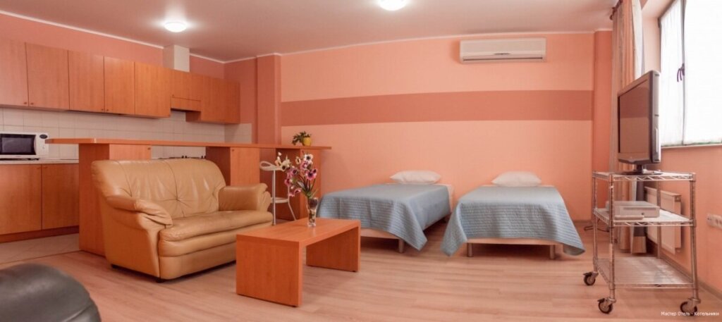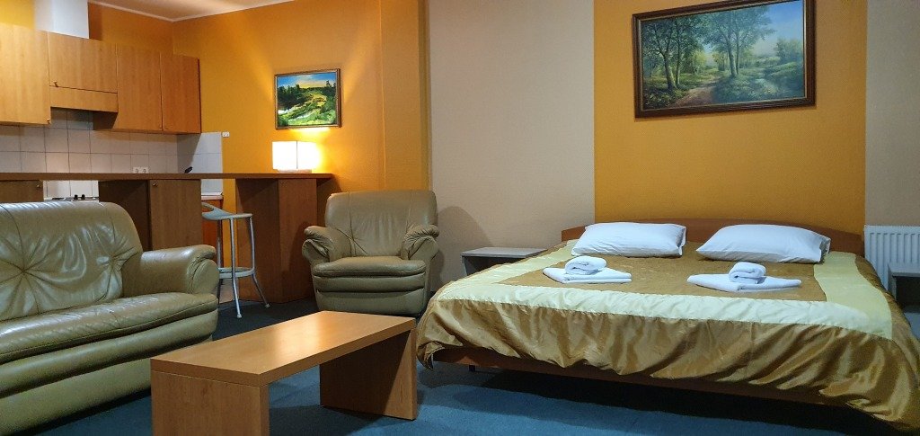 Гостям предлагаются номера с собственной кухней площадью от 40 кв. м. Каждый номер — это апартамент-студия с укомплектованной кухней (техника и посуда для приготовления и приема пищи) и собственной ванной комнатой.