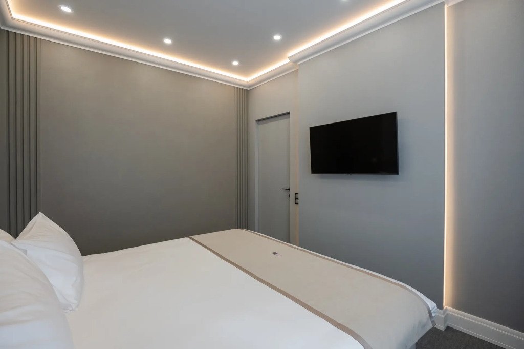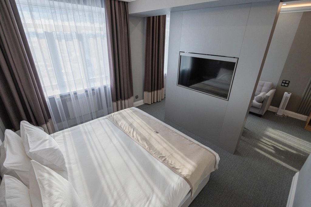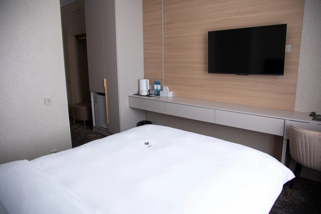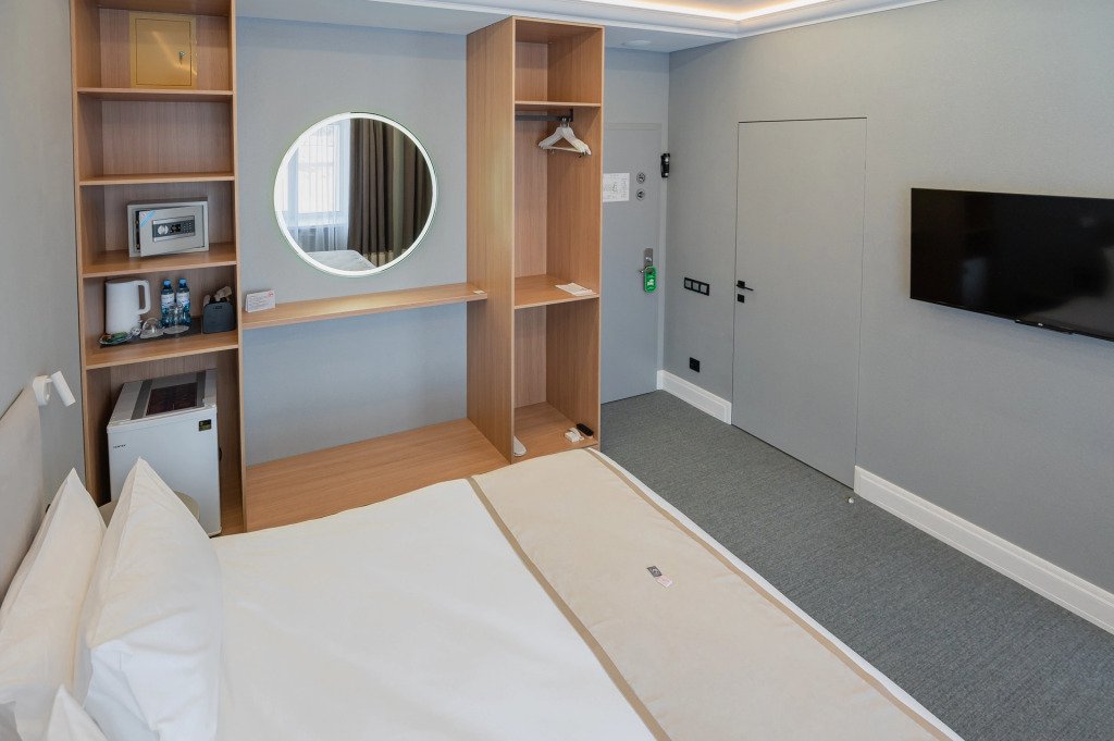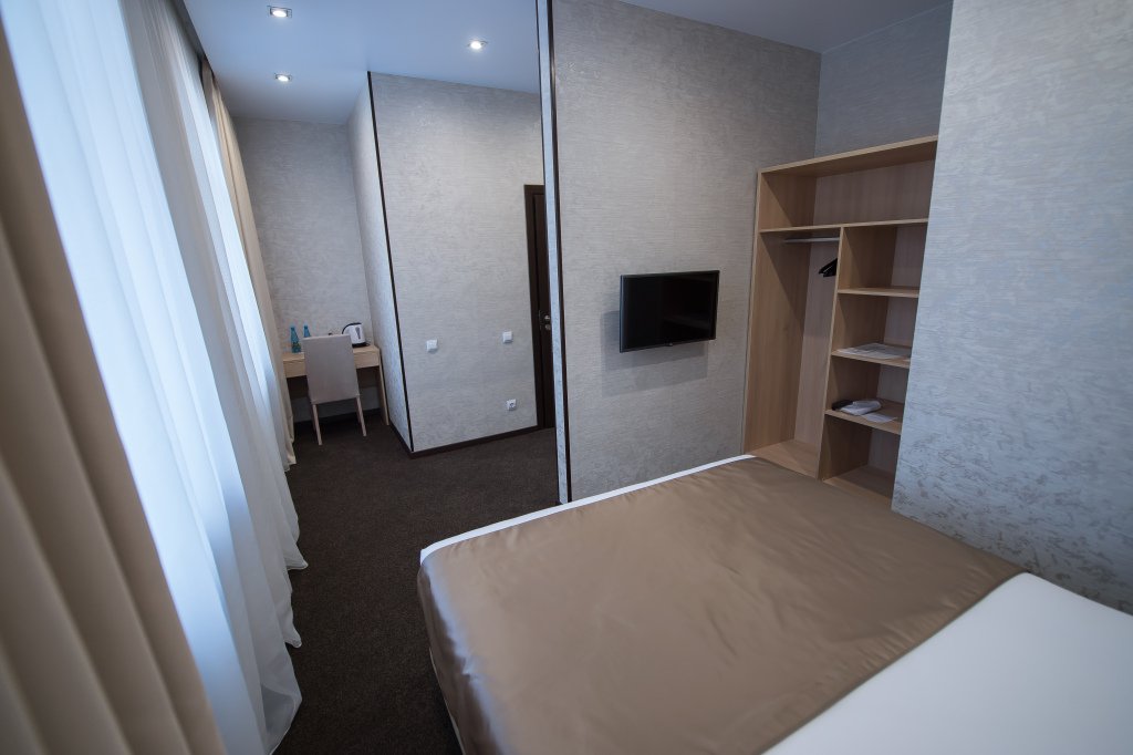 В номере гостей ждут телевизор и халат. Перечисленные услуги есть не во всех номерах.