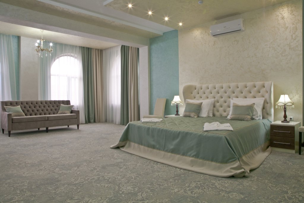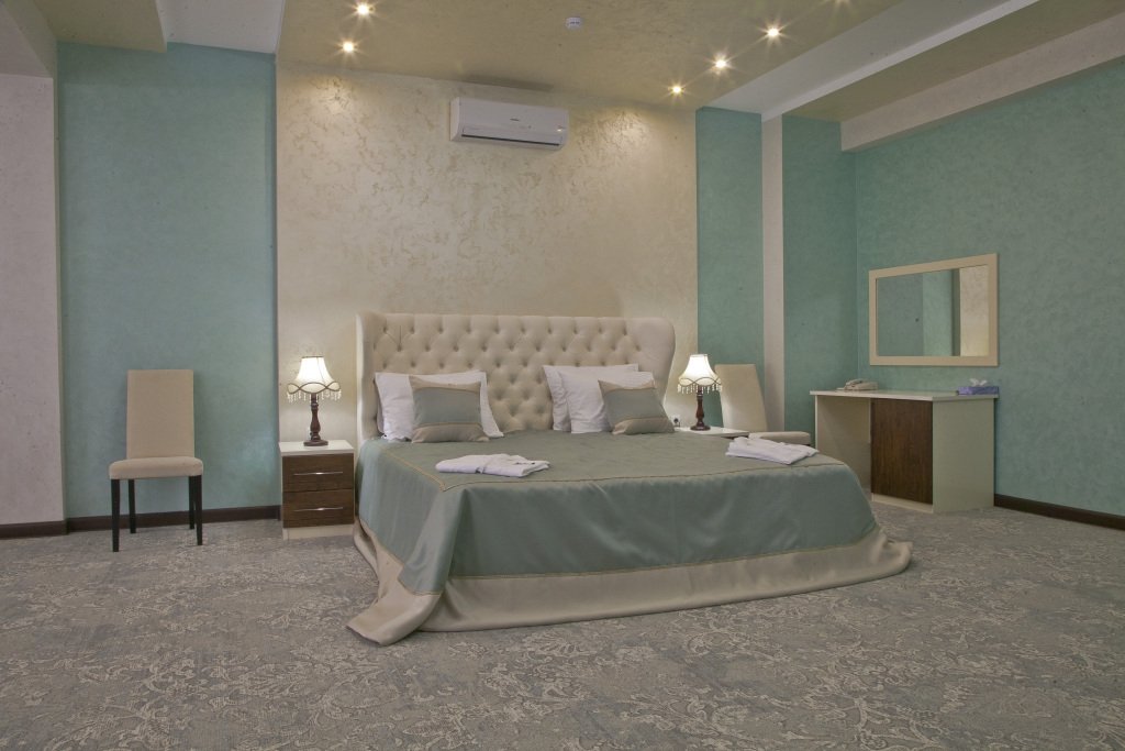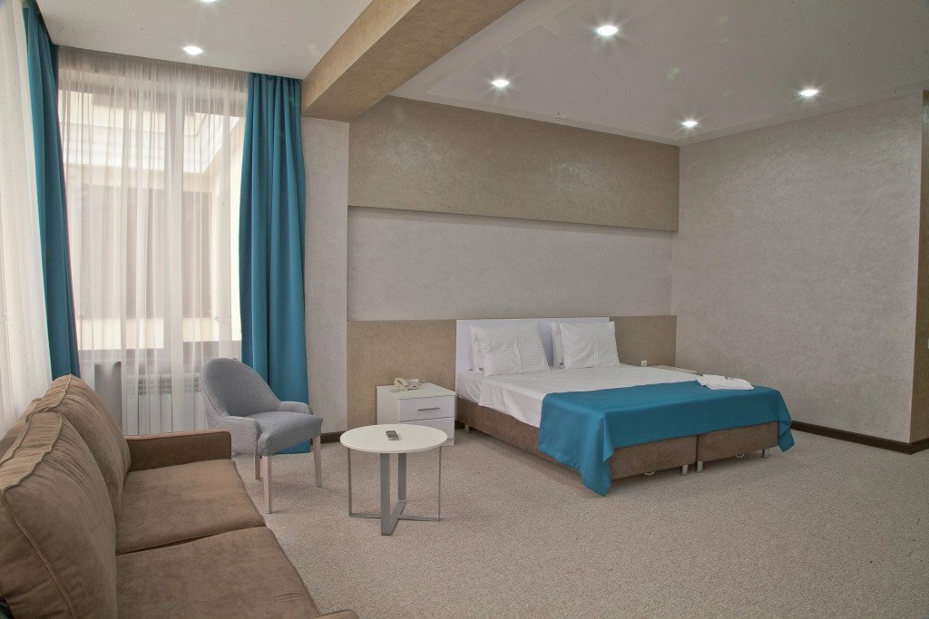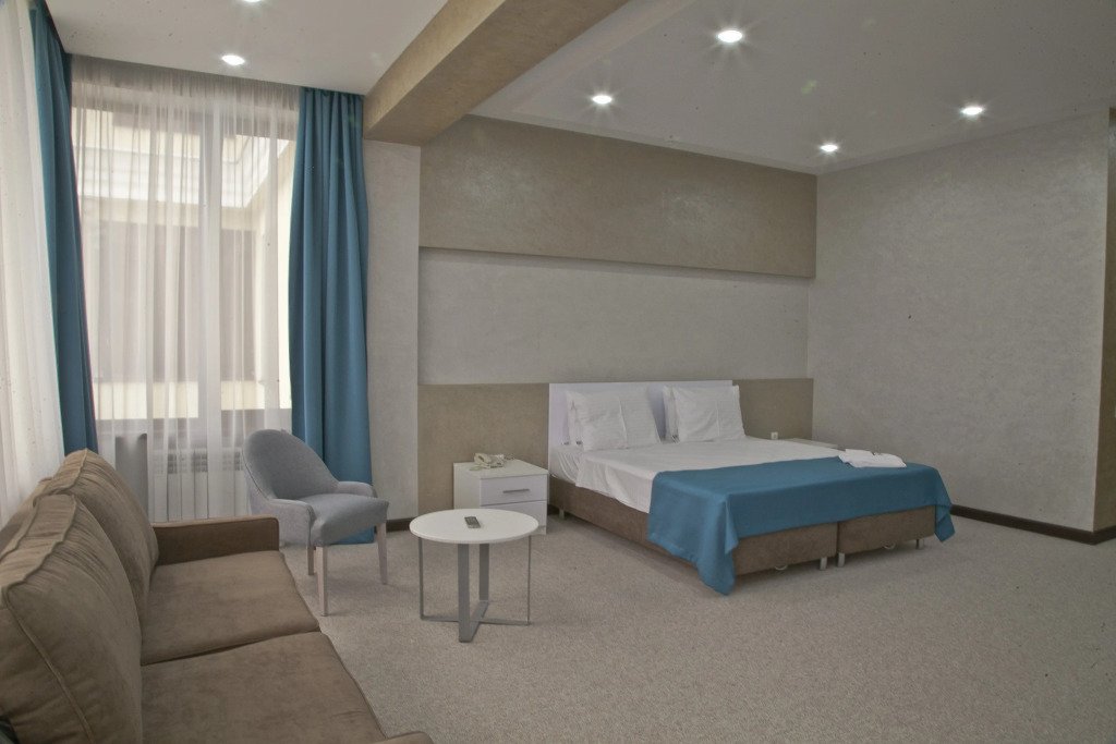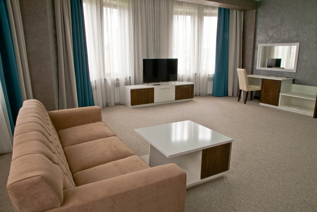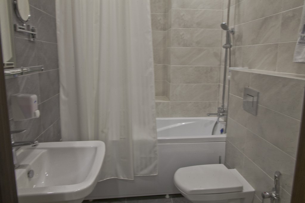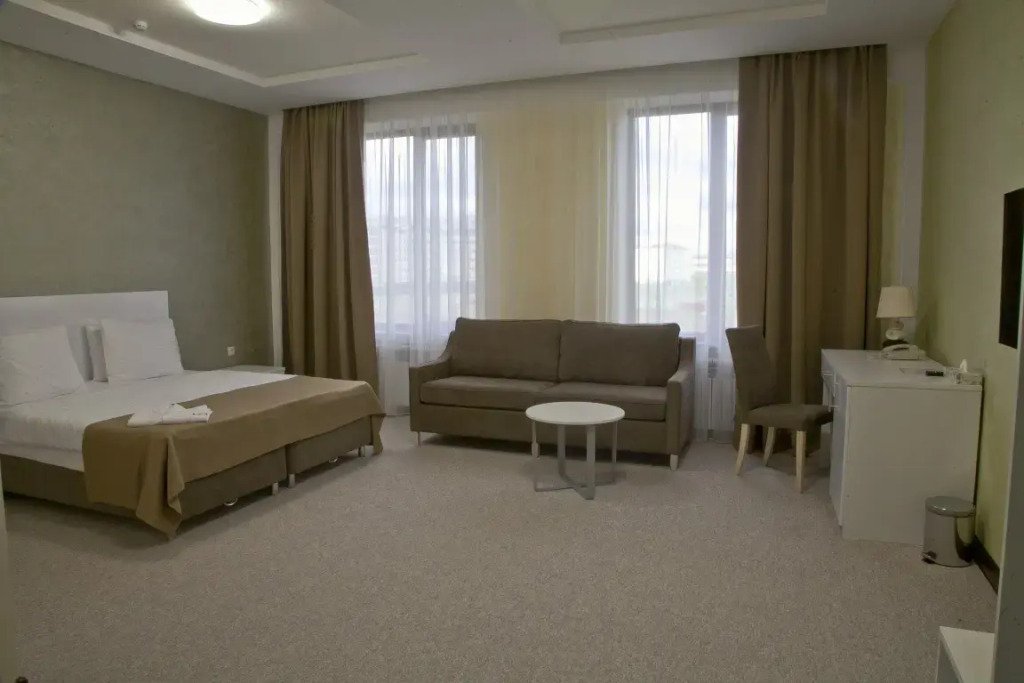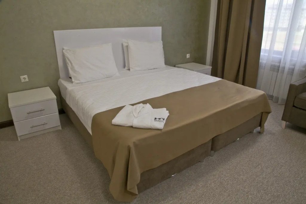 В номере вы найдёте телевизор и халат. Оснащение зависит от выбранной категории номера.