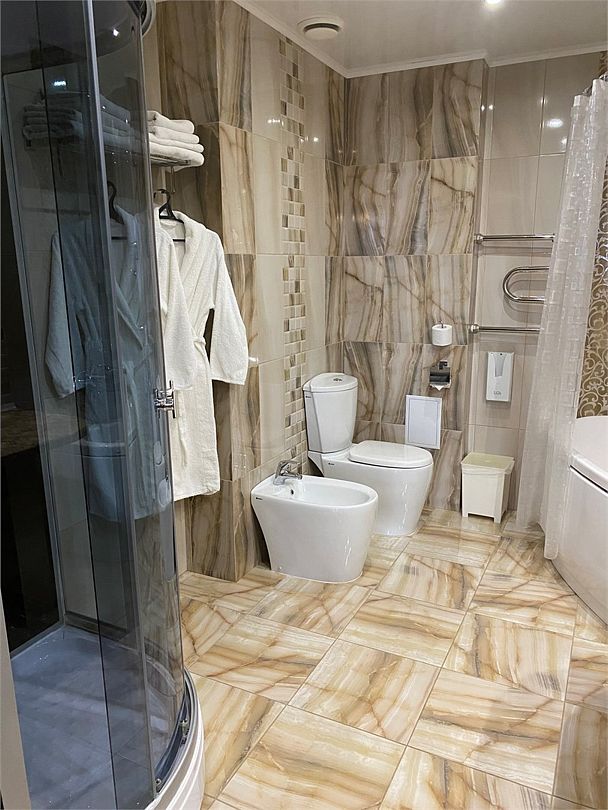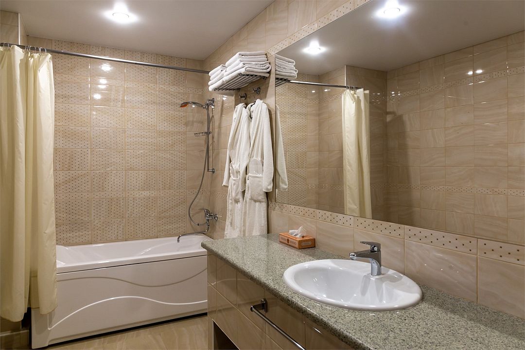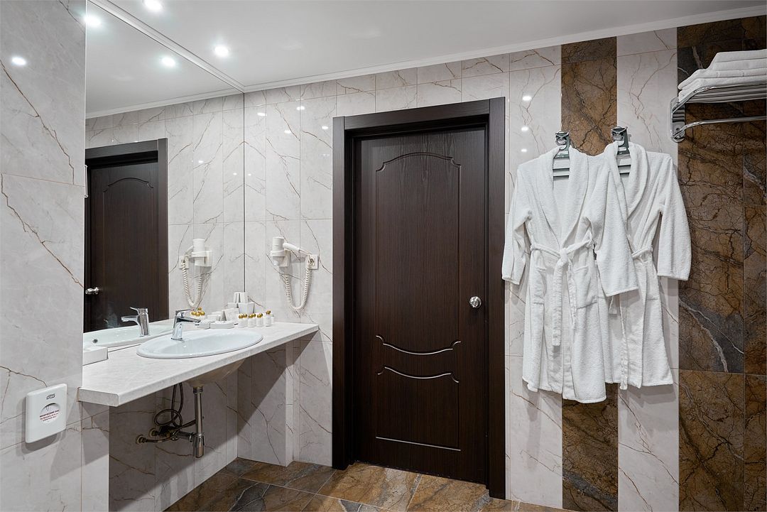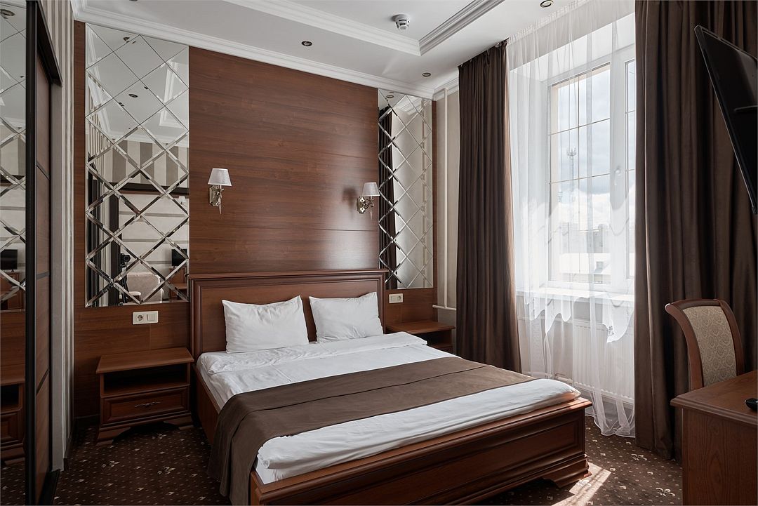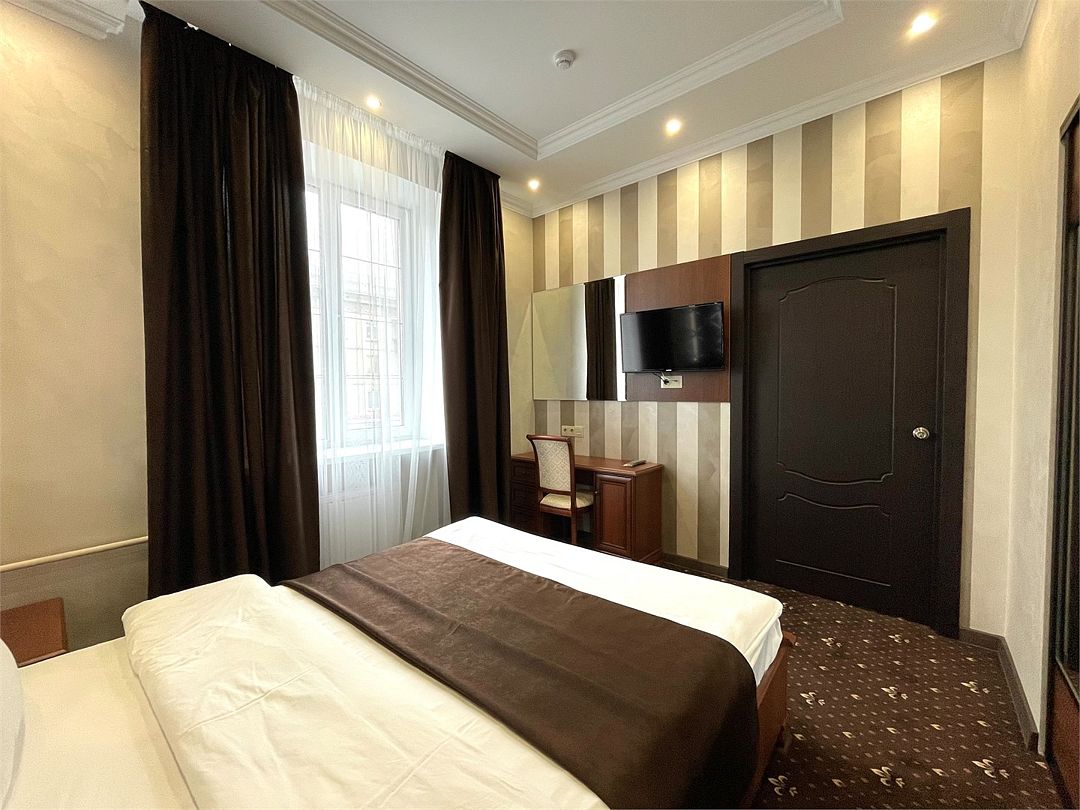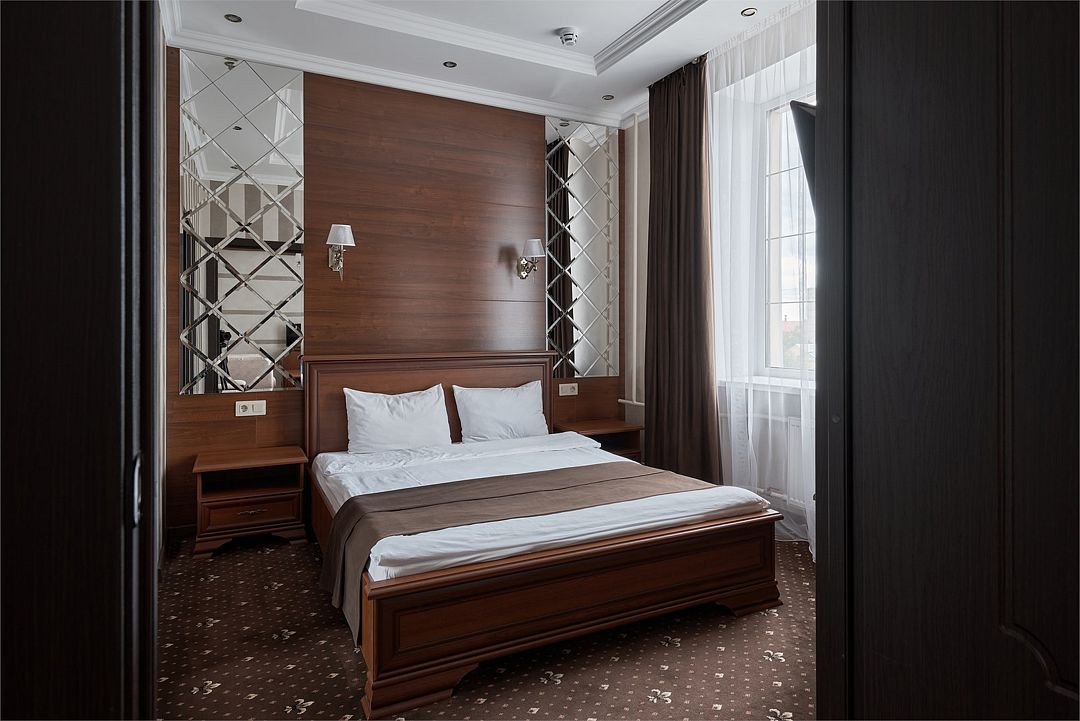 «УЛУЧШЕННЫЙ НОМЕР» (20 м2, макс. 2 чел.) - представляют собой классический вариант: одна комната. Выполненный в бежевых тонах интерьер, мебель цвета венге – все это придает номеру исключительно благородный стиль. "SUPERIOR DOUBLE ROOM» - Двухместный номер с одной двуспальной кроватью. В ванной комнате: ванна, биде, комплект полотенец, косметические принадлежности, фен, халат, тапочки. Широкоформатный ЖК телевизор , высокоскоростной WI-FI Интернет, шкаф для верхней одежды, кондиционер, холодильник, мини-бар (платно), сейф (бесплатно), письменный стол, ванна, двуспальная кровать, фен, телефон, покрытие – ламинат.Услуги и удобства