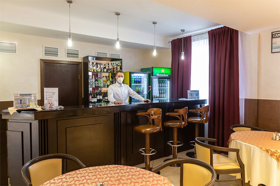 Ресторан-бар гостиницы «Корона» — это идеальное место для встречи друзей, партнеров по бизнесу, проведения свадеб, семейных праздников или романтических встреч. Меню ресторана представлено блюдами европейской, итальянской, а также необычайными авторскими блюдами от шеф-повара. Высокий уровень сервиса. Оплата любыми видами карт. Зал ресторан может вместить до 80 человек. Бар работает круглосуточно.