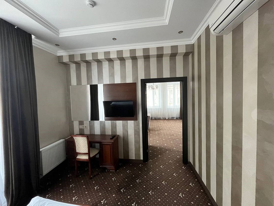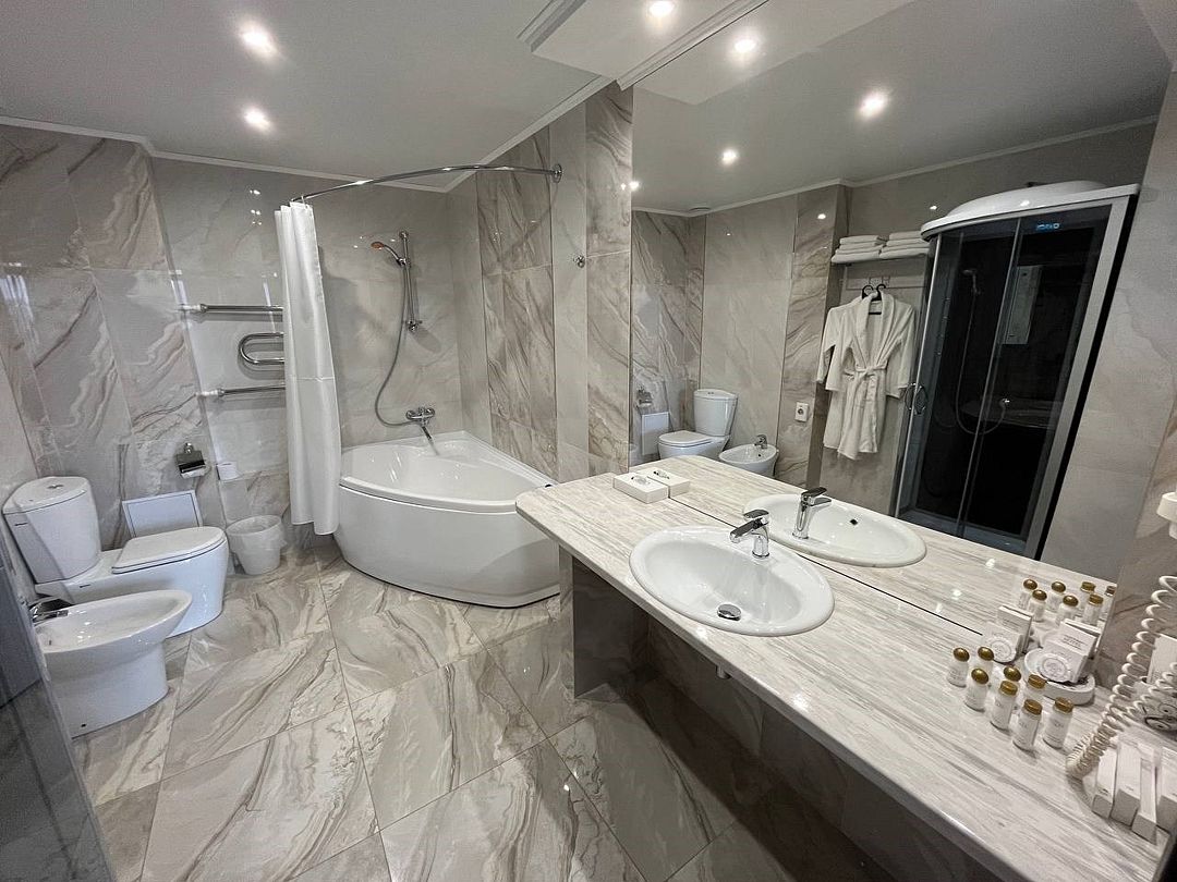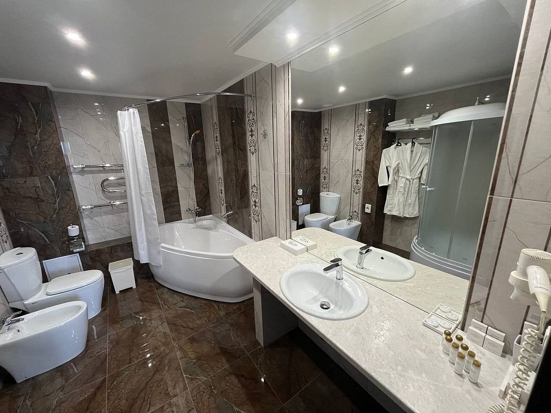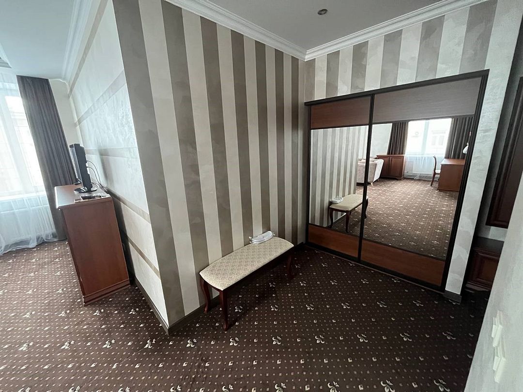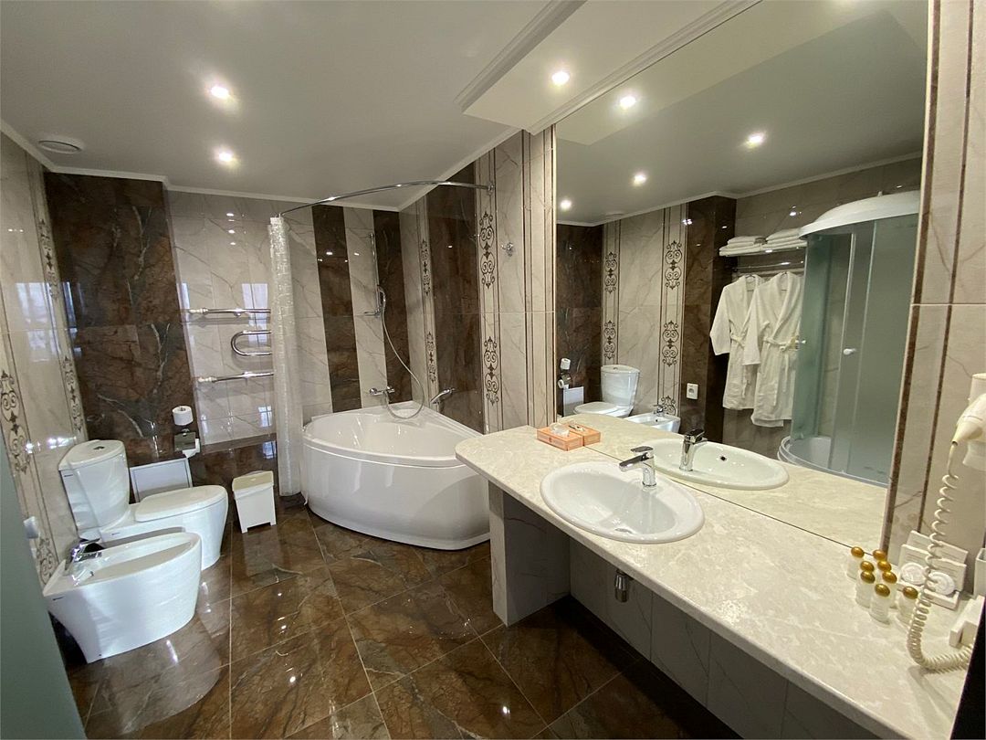 два телевизора, спутниковое телевидение, кабельное телевидение, Wi-Fi, интернет, кондиционер, светильник, фен, система безопасности, электронные замки, обогреватель, ванная комната, душевая кабина, ванна, ванна или душевая кабина, биде, банные принадлежности, халаты, банные полотенца, тапочки, гигиенические средства, косметические средства, двуспальная кровать, диван, кресла, тумбы, стулья, шкаф для одежды, вешалки, журнальный столик, письменный стол, багажная тумба, зеркало, комод, пуфики, ковер, мебельный гарнитур, две комнаты, мини-бар, письменные принадлежности, чайный набор, набор посуды, обслуживание номеров, информационная карта, меню, сейф, чайник, унитаз, раковина, мягкая мебель, косметическое зеркало, питьевая вода, ковровое покрытие, отопление, кулер на этаже, вид во двор, кухонная посуда, стаканы, столовые приборы, туалетный столик, стул, тумба, туалетный столик, туалетные средства, цифровое тв, внутренний телефон, телевизор с плоским экраном, мини-холодильник, шкаф-купе, номер для некурящих, USB-порт, онлайн-регистрация до заезда, оснащение для гостей с ограниченными возможностями, межкомнатная дверь, уборка номера, набор для приготовления чая и кофе, услуги прачечной (платно), туалетные принадлежности премиум-класса, вешалки-плечики, бутилированная вода, мини-бар (платно), шапочка для душа, мыло, затемняющая штора, зеркало в полный рост, прачечная (за дополнительную плату), онлайн-регистрация, косметические принадлежности премиум-классаВ гостиничном номере