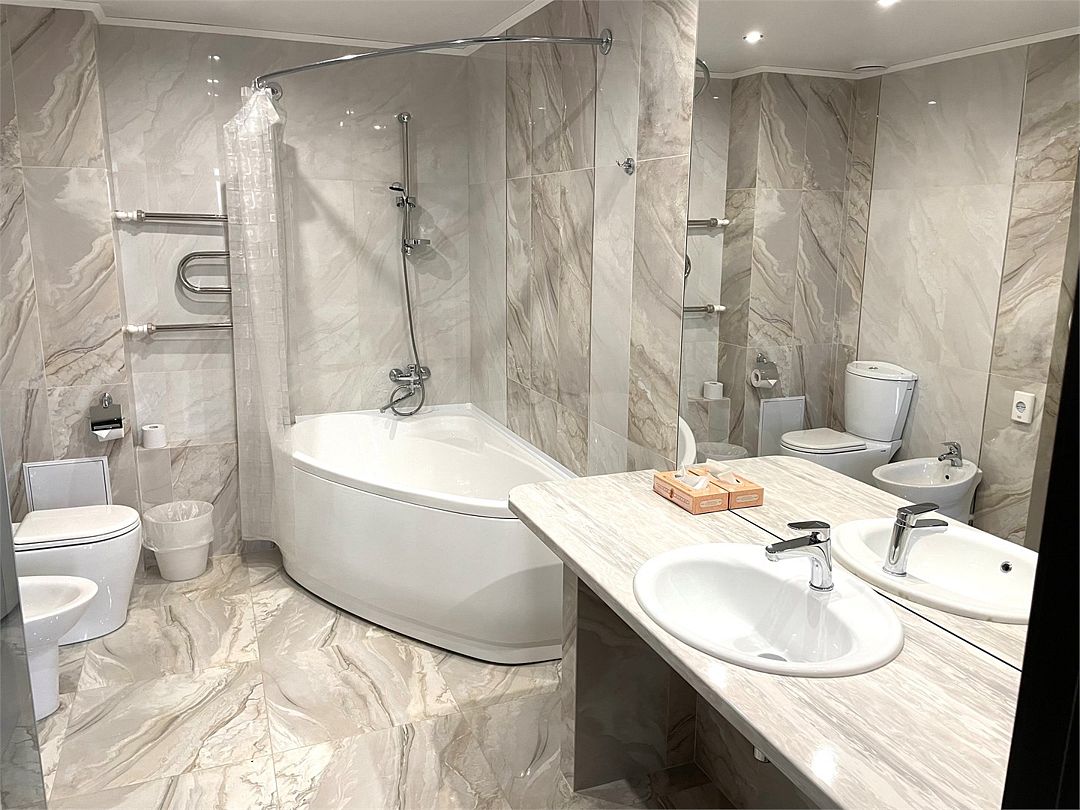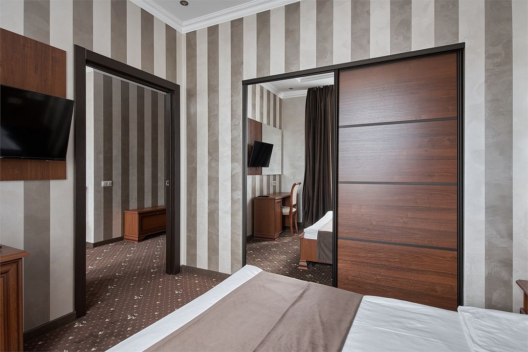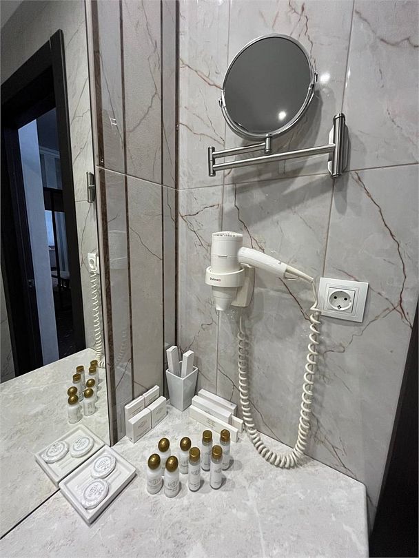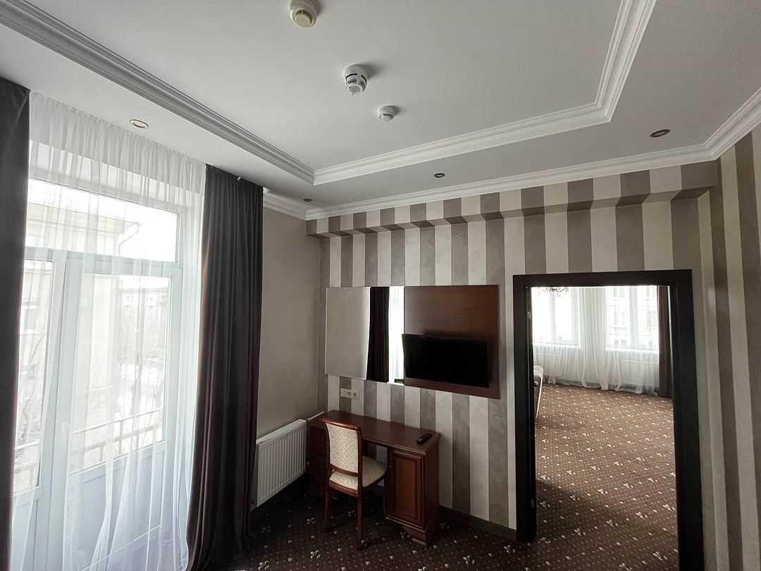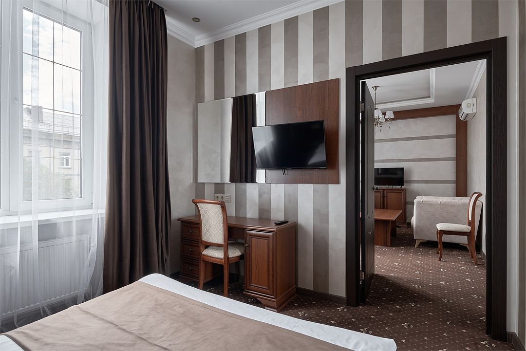 два телевизора, спутниковое телевидение, кабельное телевидение, Wi-Fi, интернет, кондиционер, светильник, фен, система безопасности, электронные замки, обогреватель, ванная комната, душевая кабина, ванна, ванна или душевая кабина, биде, банные принадлежности, халаты, банные полотенца, тапочки, гигиенические средства, косметические средства, двуспальная кровать, диван, кресла, тумбы, стулья, шкаф для одежды, вешалки, журнальный столик, письменный стол, багажная тумба, зеркало, комод, пуфики, ковер, мебельный гарнитур, две комнаты, мини-бар, письменные принадлежности, чайный набор, набор посуды, обслуживание номеров, информационная карта, меню, сейф, чайник, унитаз, раковина, мягкая мебель, косметическое зеркало, питьевая вода, ковровое покрытие, отопление, кулер на этаже, вид во двор, кухонная посуда, стаканы, столовые приборы, туалетный столик, стул, тумба, туалетный столик, туалетные средства, цифровое тв, внутренний телефон, телевизор с плоским экраном, мини-холодильник, шкаф-купе, номер для некурящих, USB-порт, онлайн-регистрация до заезда, оснащение для гостей с ограниченными возможностями, межкомнатная дверь, уборка номера, набор для приготовления чая и кофе, услуги прачечной (платно), туалетные принадлежности премиум-класса, вешалки-плечики, бутилированная вода, мини-бар (платно), шапочка для душа, мыло, затемняющая штора, зеркало в полный рост, прачечная (за дополнительную плату), онлайн-регистрация, косметические принадлежности премиум-классаВ гостиничном номере