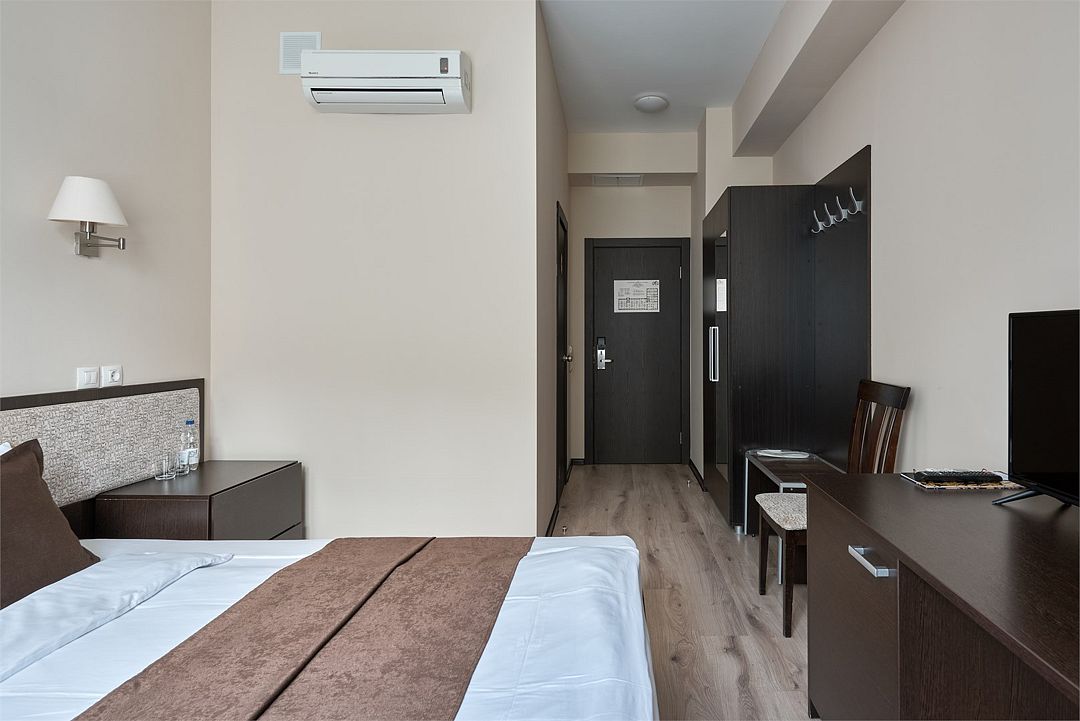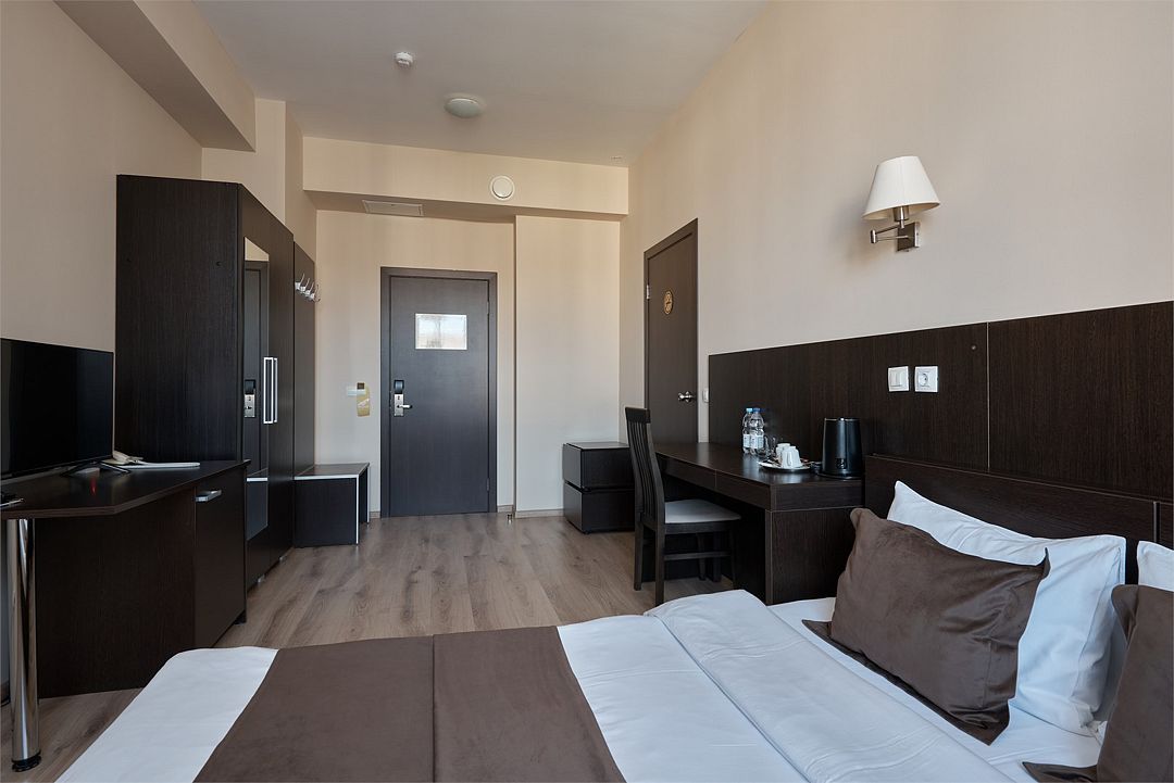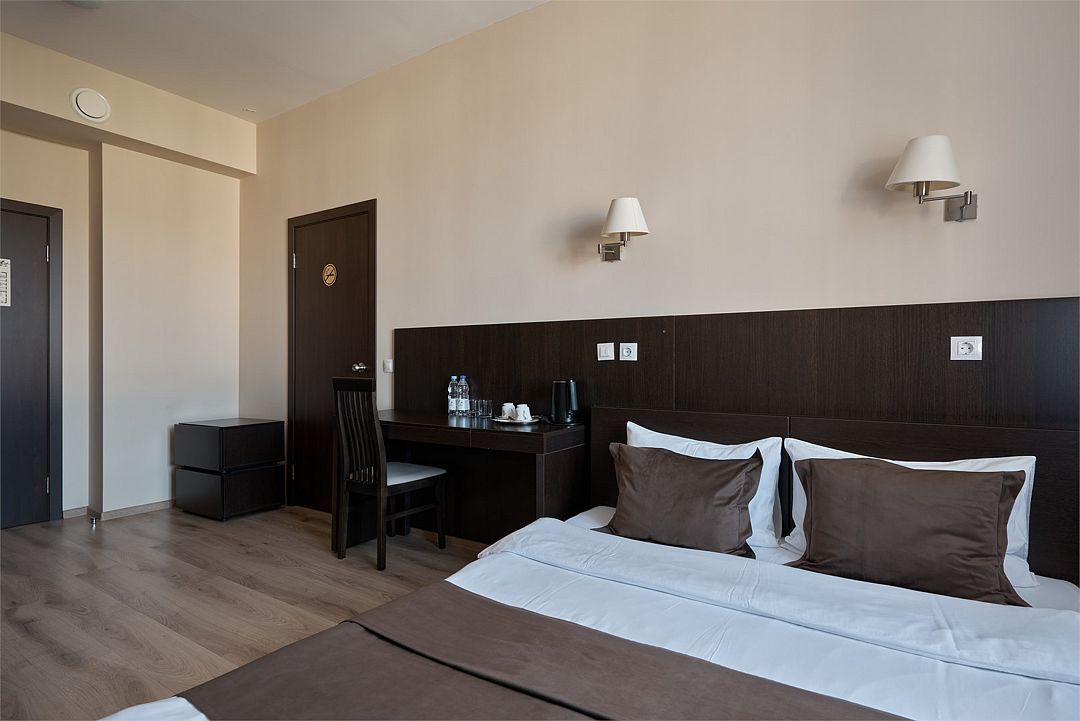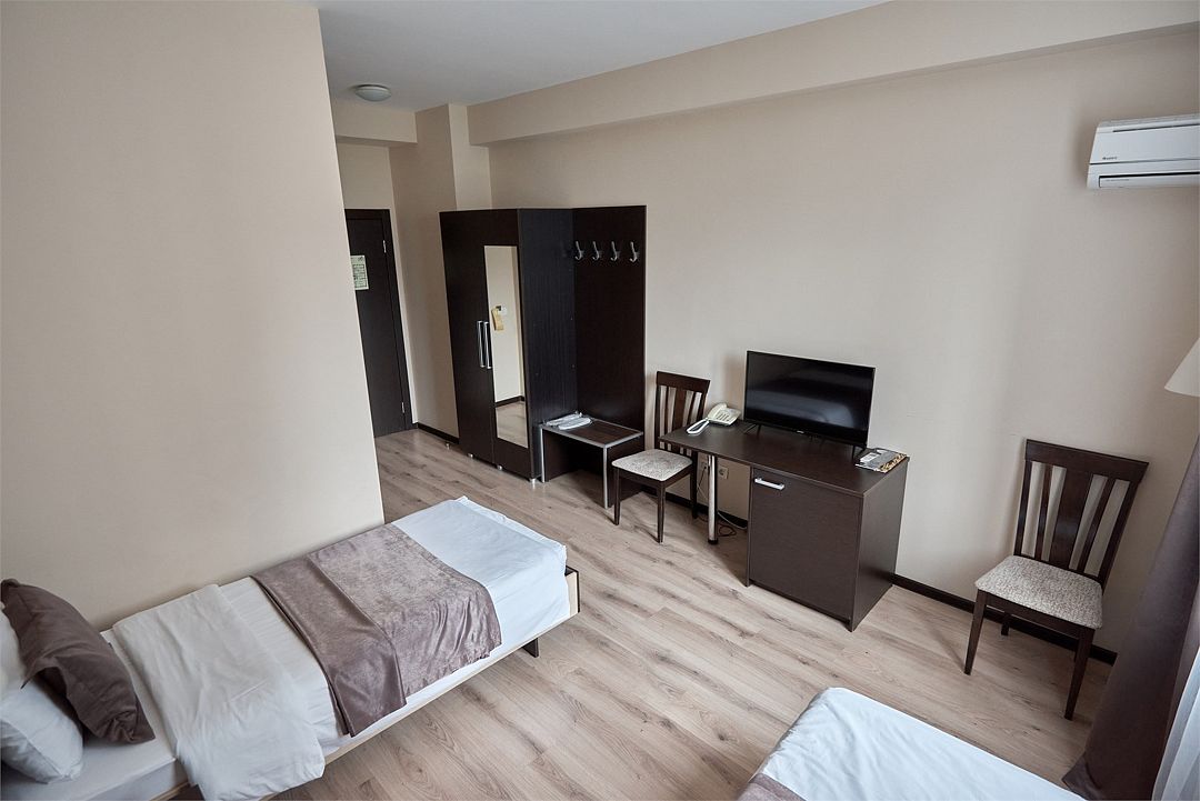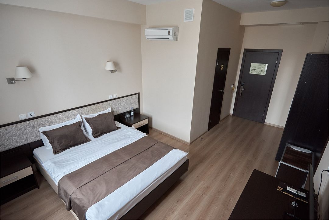 К услугам наших гостей комфортабельные номера, отвечающие всем требованиям и стандартам современного уровня гостеприимства. В каждом номере удобная мебель, холодильник, кондиционер, телефон, кабельное телевидение, Wi-Fi и все необходимое для комфортного пребывания.