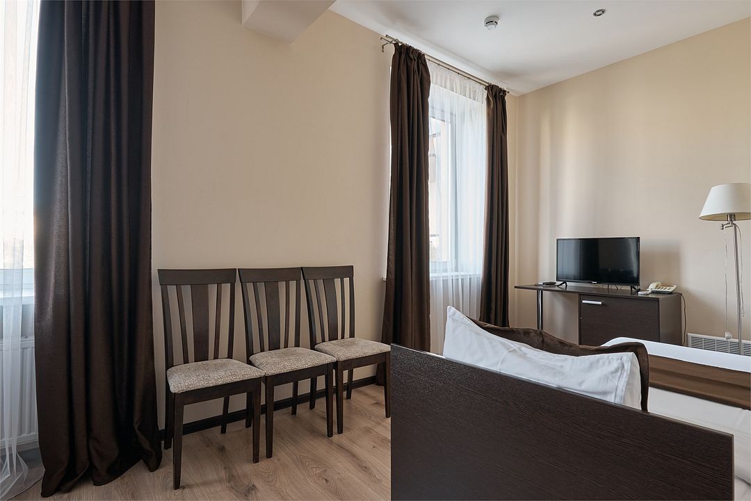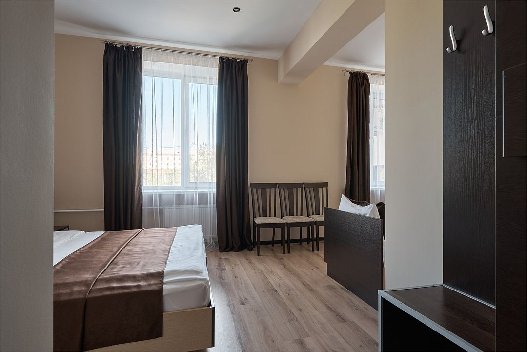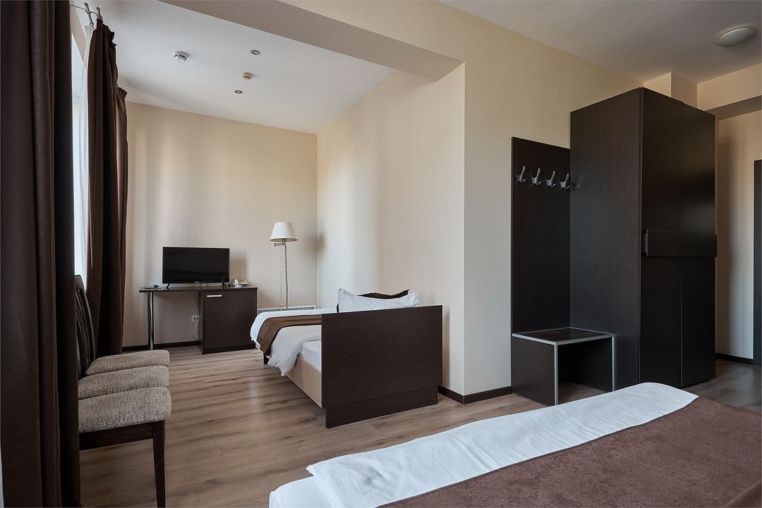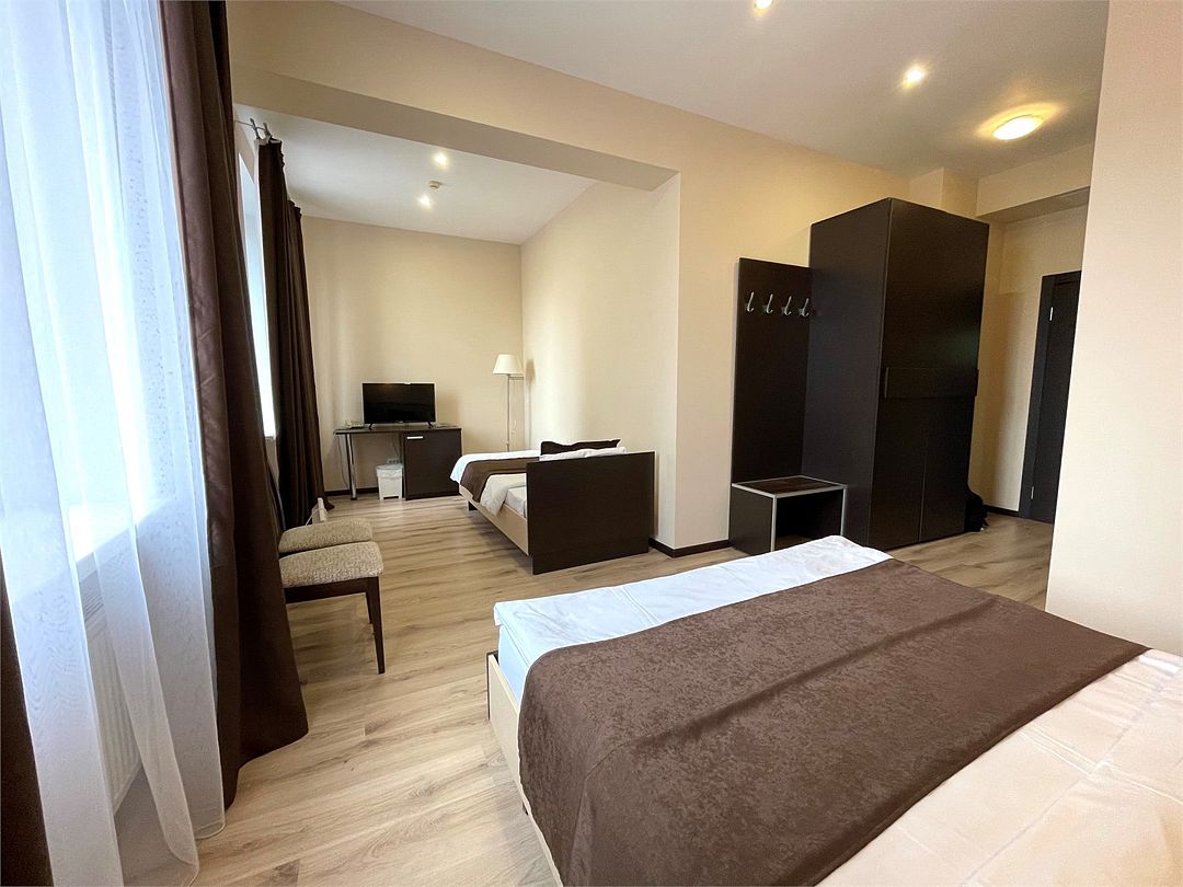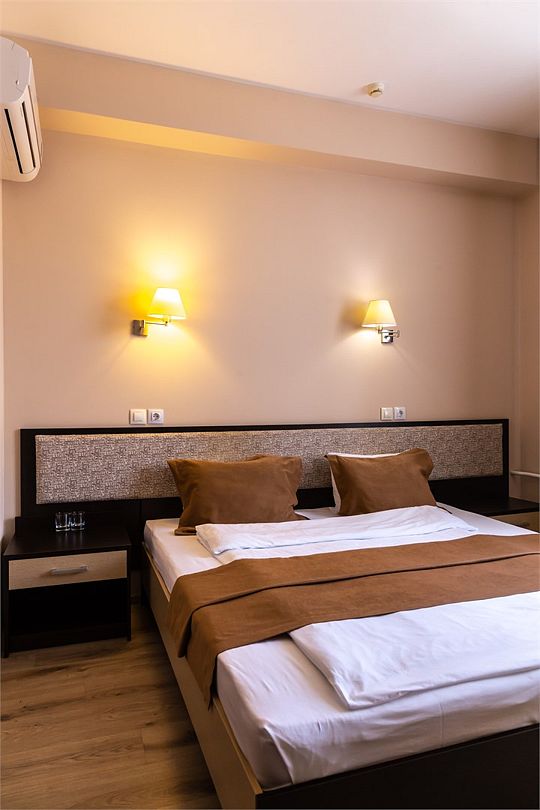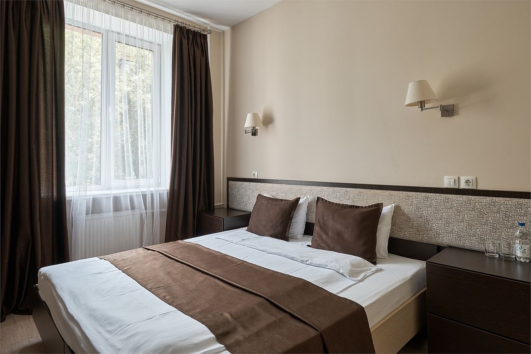 К услугам наших гостей комфортабельные номера, отвечающие всем требованиям и стандартам современного уровня гостеприимства. В каждом номере удобная мебель, холодильник, кондиционер, телефон, кабельное телевидение, Wi-Fi и все необходимое для комфортного пребывания.
