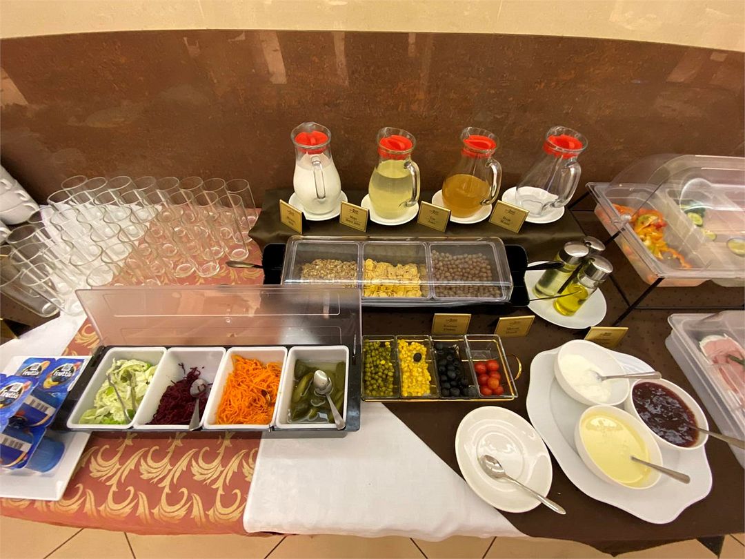 2 взрослых на основных местахВключен завтрак "шведский стол"Тариф с завтраком - Менеджер каналовПодробнееВ стоимость включен завтрак в формате "Шведский стол", в него входят: два горячих блюда, два гарнира, мясная, овощная, фруктовая нарезки, два вида каши, омлет (яичница по запросу), яйцо вареное, несколько видов выпечки, творог, блинчики, блинчики с начинкой, чай черный/зеленый, кофе и прочее.