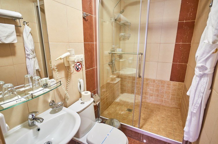 телевизор, Wi-Fi, телефон, кондиционер, настольные лампы, фен, будильник, электронные замки, душевая кабина, санузел, халаты, банные полотенца, тапочки, гигиенические средства, косметические средства, двуспальная кровать, диван, вешалки, письменный стол, багажная тумба, письменные принадлежности, чайный набор, сейф, чайник, унитаз, раковина, косметическое зеркало, питьевая вода, отопление, душ, вид во двор, стул, туалетный столик, туалетные средства, туалет, цифровое тв, внутренний телефон, телевизор с плоским экраном, мини-холодильник, шкаф-купе, гостиничная парфюмерия, номер для некурящихВ номере