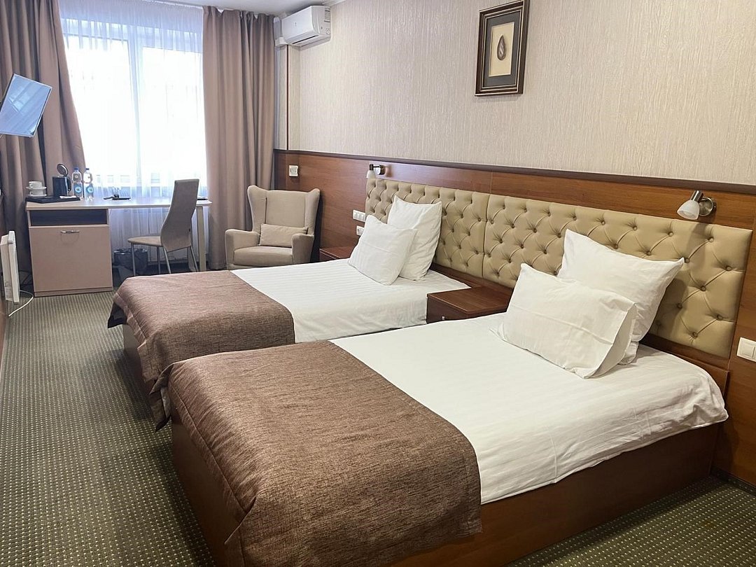 телевизор, кабельное телевидение, Wi-Fi, телефон, кондиционер, светильник, фен, вентилятор, электронные замки, утюг, душевая кабина, санузел, банные принадлежности, халаты, банные полотенца, тапочки, гигиенические средства, косметические средства, две полутораспальные кровати, гладильная доска, диван, стулья, вешалки, письменный стол, зеркало, чайный набор, сейф, чайник, унитаз, раковина, косметическое зеркало, питьевая вода, ковровое покрытие, отопление, душ, туалетные средства, цифровое тв, внутренний телефон, телевизор с плоским экраном, мини-холодильник, шкаф-купе, номер для некурящихВ номере