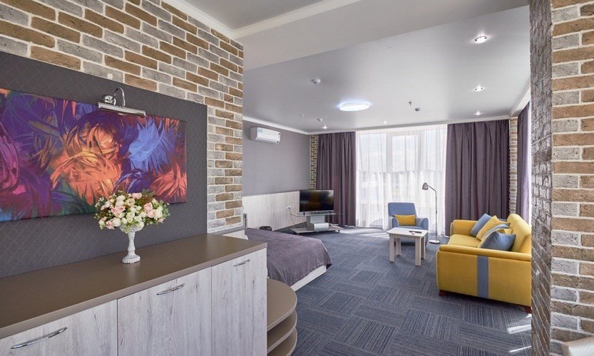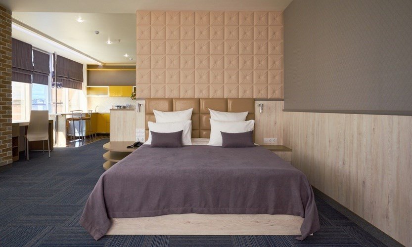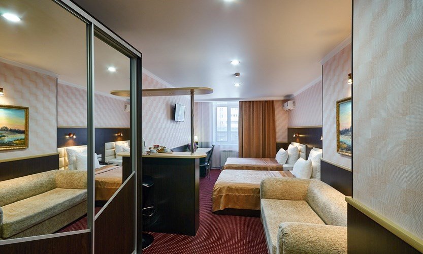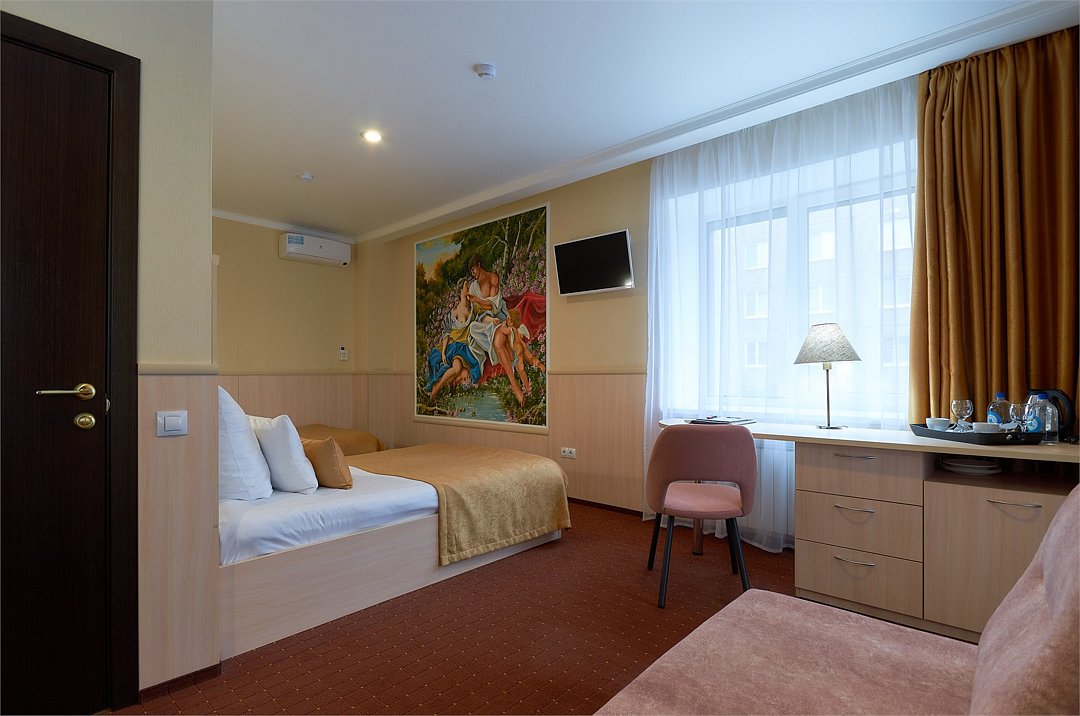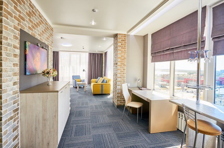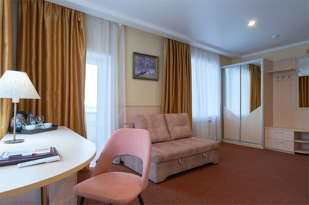 Студия - это популярный формат однокомнатного номера, в котором пространство удачно сочетает спальную, рабочую и гостевую зоны. Номер идеально подходит для тех, кто большую часть времени проводит в деловых поездках, но придает большое значение функциональности, простору помещения и комфорту. Основное преимущество номеров - балконы с прекрасным видом на Храм Вознесения, р.Урал и Арену Металлург. В комнате имеется комфортная рабочая зона с удобным письменным столом. Бесплатный Wi-Fi доступ в Интернет на всей территории отеля позволит Вам всегда оставаться на связи.Услуги и удобства