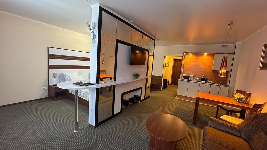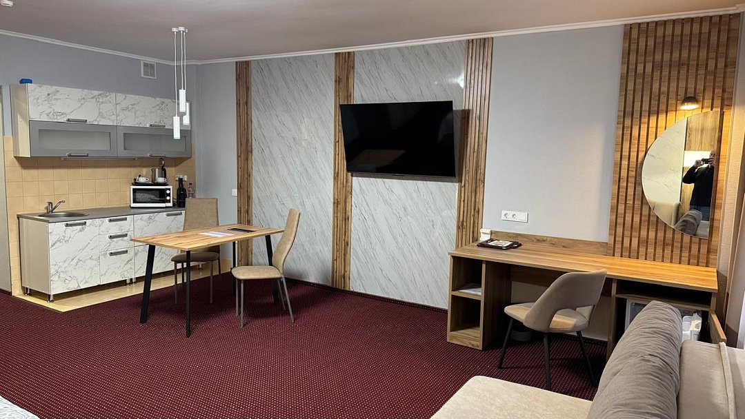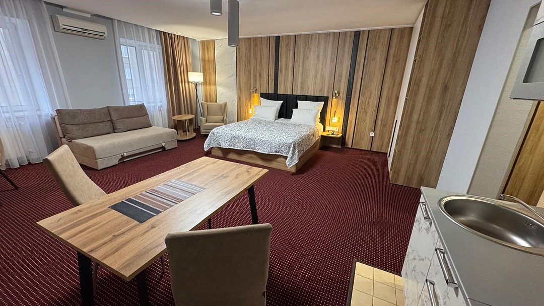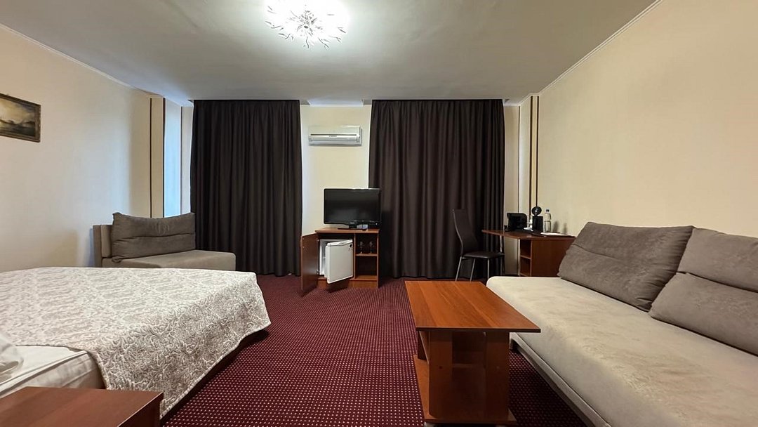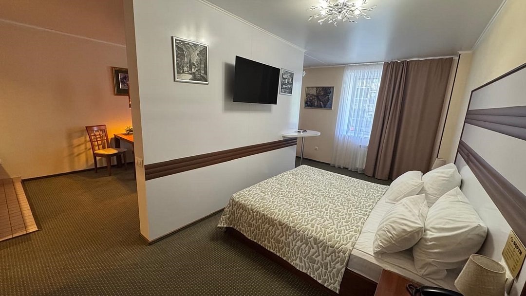 Студия - это популярный формат однокомнатного номера, в котором пространство удачно сочетает спальную, рабочую и гостевую зоны. Номер идеально подходит для тех, кто большую часть времени проводит в деловых поездках, но придает большое значение функциональности, простору помещения и комфорту. Основное преимущество номеров - балконы с прекрасным видом на Храм Вознесения, р.Урал и Арену Металлург. В комнате имеется комфортная рабочая зона с удобным письменным столом. Бесплатный Wi-Fi доступ в Интернет на всей территории отеля позволит Вам всегда оставаться на связи.Услуги и удобства
