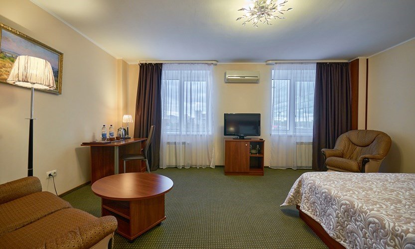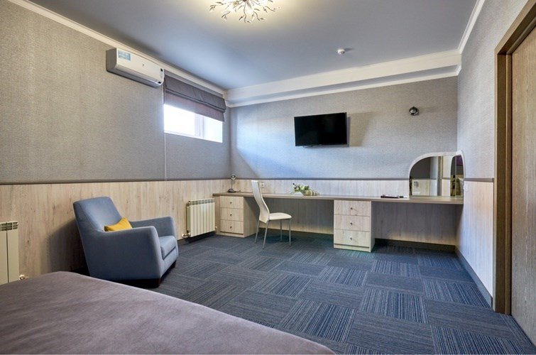 телевизор, Wi-Fi, телефон, кондиционер, светильник, настольные лампы, фен, будильник, электронные замки, утюг, обогреватель, душевая кабина, санузел, водонагреватель, халаты, тапочки, косметические средства, балкон, балкон с красивым видом, кровать «King size», двуспальная кровать, гладильная доска, диван, письменный стол, зеркало, чайный набор, обслуживание номеров, информационная карта, меню, сейф, чайник, унитаз, раковина, мягкая мебель, питьевая вода, душ, вид на город, вид на реку, кресло, кофейный столик, стул, тумба, туалет, внутренний телефон, телевизор с плоским экраном, мини-холодильник, шкаф-купе, гостиничная парфюмерия, номер для некурящих, гигиенический душВ номере