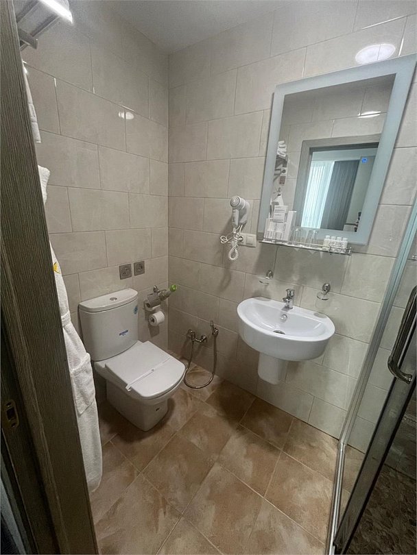 телевизор, Wi-Fi, телефон, кондиционер, настольные лампы, фен, будильник, электронные замки, душевая кабина, халаты, банные полотенца, тапочки, гигиенические средства, косметические средства, двуспальная кровать, вешалки, письменный стол, багажная тумба, зеркало, письменные принадлежности, чайный набор, сейф, чайник, унитаз, раковина, питьевая вода, отопление, стул, туалетные средства, туалет, цифровое тв, внутренний телефон, телевизор с плоским экраном, мини-холодильник, шкаф-купе, гостиничная парфюмерия, без окна, номер для некурящихВ номере