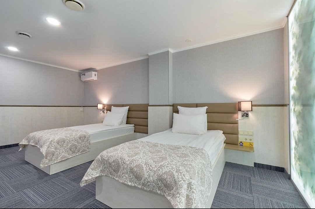 телевизор, кабельное телевидение, Wi-Fi, телефон, кондиционер, светильник, фен, вентилятор, электронные замки, утюг, душевая кабина, санузел, банные принадлежности, халаты, банные полотенца, тапочки, гигиенические средства, косметические средства, две полутораспальные кровати, гладильная доска, стулья, вешалки, письменный стол, зеркало, чайный набор, сейф, чайник, унитаз, раковина, косметическое зеркало, питьевая вода, ковровое покрытие, отопление, душ, туалетные средства, цифровое тв, внутренний телефон, телевизор с плоским экраном, мини-холодильник, шкаф-купе, номер для некурящихВ номере