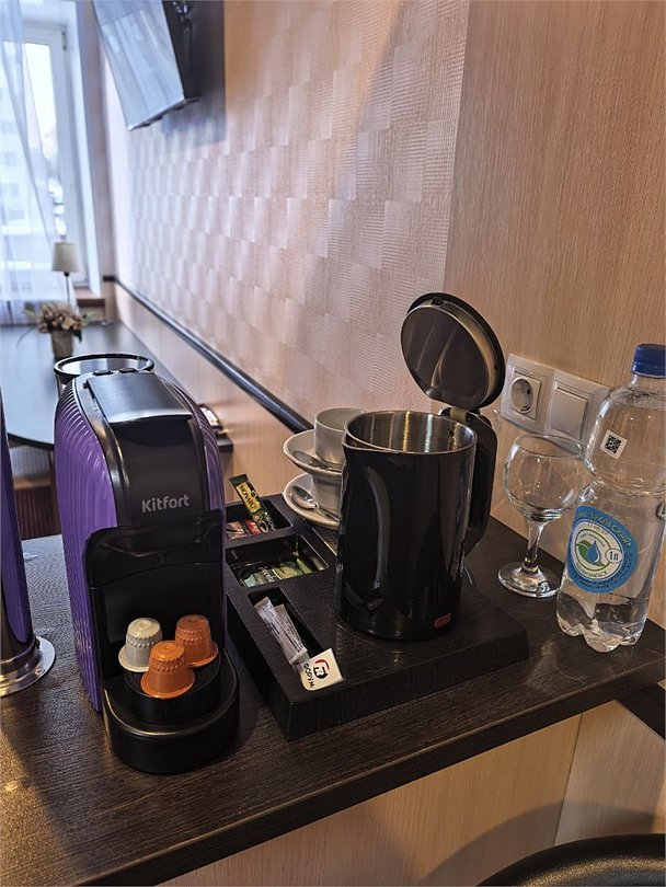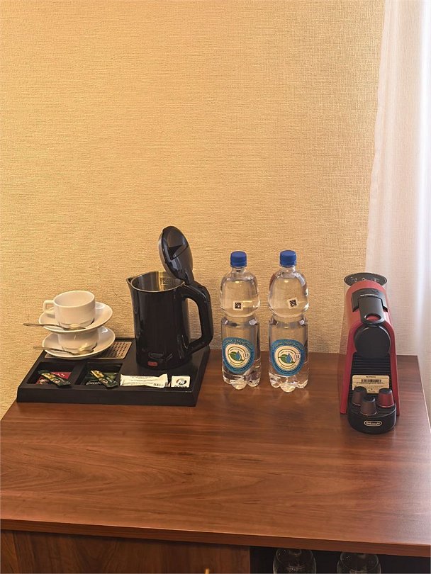 телевизор, Wi-Fi, телефон, кондиционер, светильник, настольные лампы, фен, будильник, электронные замки, утюг, обогреватель, душевая кабина, санузел, водонагреватель, халаты, тапочки, косметические средства, балкон, балкон с красивым видом, кровать «King size», двуспальная кровать, гладильная доска, диван, письменный стол, зеркало, чайный набор, обслуживание номеров, информационная карта, меню, сейф, чайник, унитаз, раковина, мягкая мебель, питьевая вода, душ, вид на город, вид на реку, кресло, кофейный столик, стул, тумба, туалет, внутренний телефон, телевизор с плоским экраном, мини-холодильник, шкаф-купе, гостиничная парфюмерия, номер для некурящих, гигиенический душВ гостиничном номере