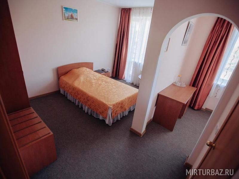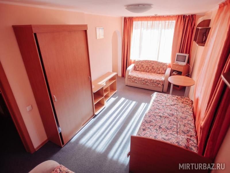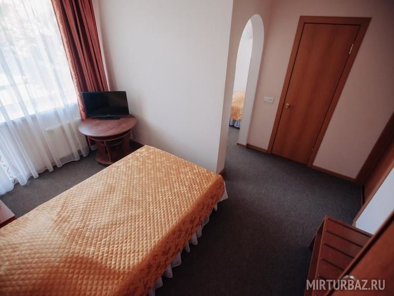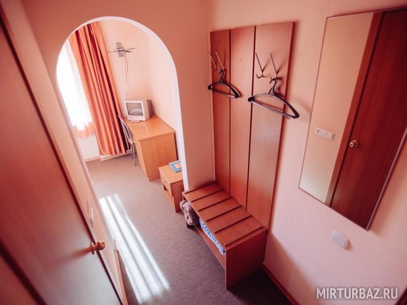 В номере: односпальная кровать или двуспальная кровать, стол, телефон, тумбочка, телевизор, посуда, холодильник.