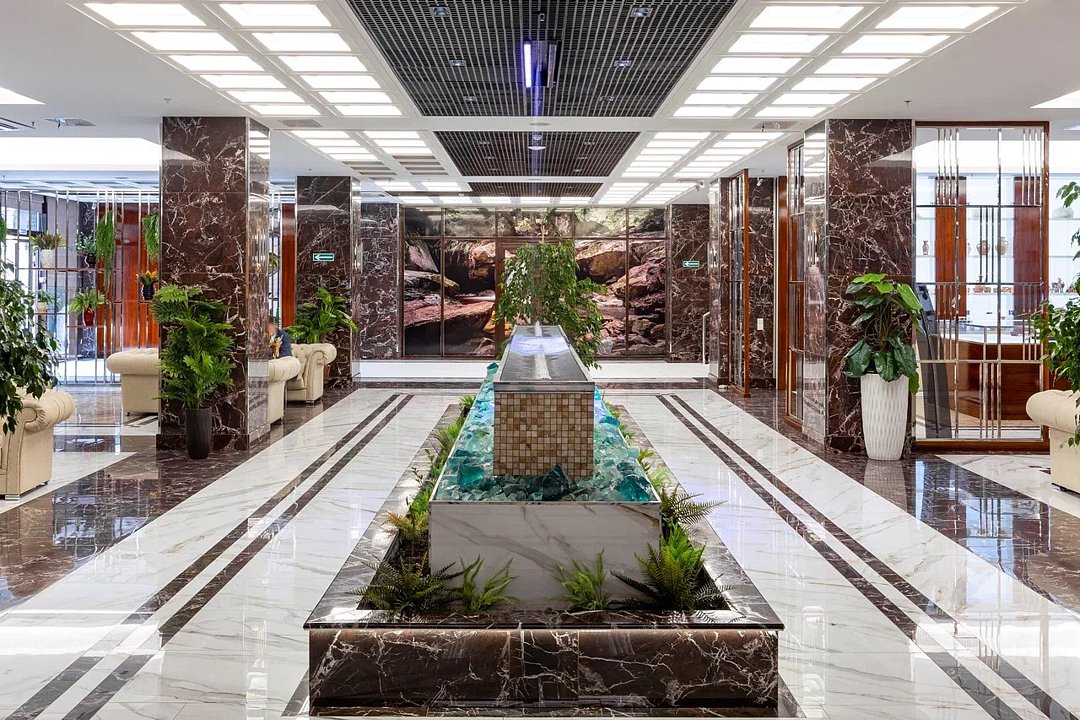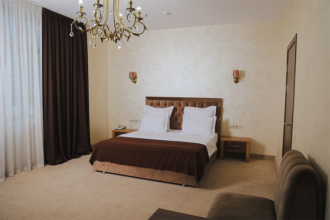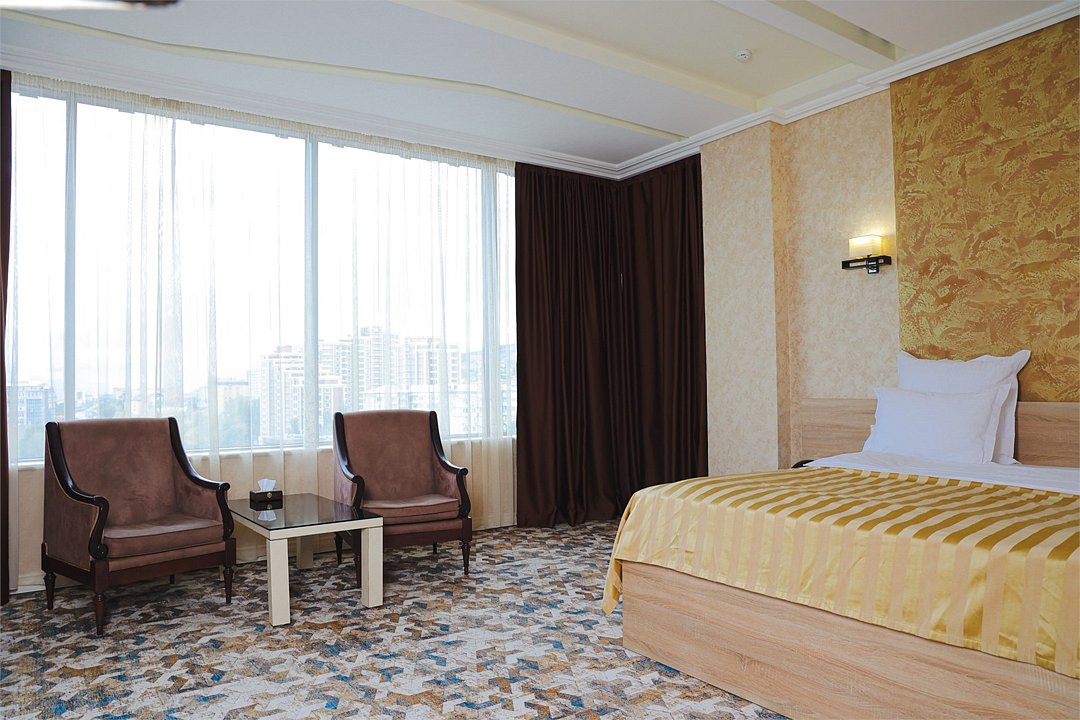 Путешествие по работеДля Махачкалы - супер !Бронировали ориентируясь на местоположение , по цене - один из самых дорогих в городе . Новое здание отеля с хорошим ремонтом , отличная подземная стоянка с лифтами на этажи отеля . Большой холл , Охрана , вежливый персонал на ресепшене . Большие номера , высокие потолки , свежий ремонт , дорогая сантехника и Мебель , панорамные окна с хорошим видом и отличной звукоизоляцией . Постель - отлично , матрас - чуть жестковат , но не критично. В номере - есть все необходимое . Заехали ночью , заказали еду в номер , все принесли быстром вежливо . Завтраки - очень сытные и вкусные . Для бизнес отеля в Махачкале - очень и очень достойный вариант .