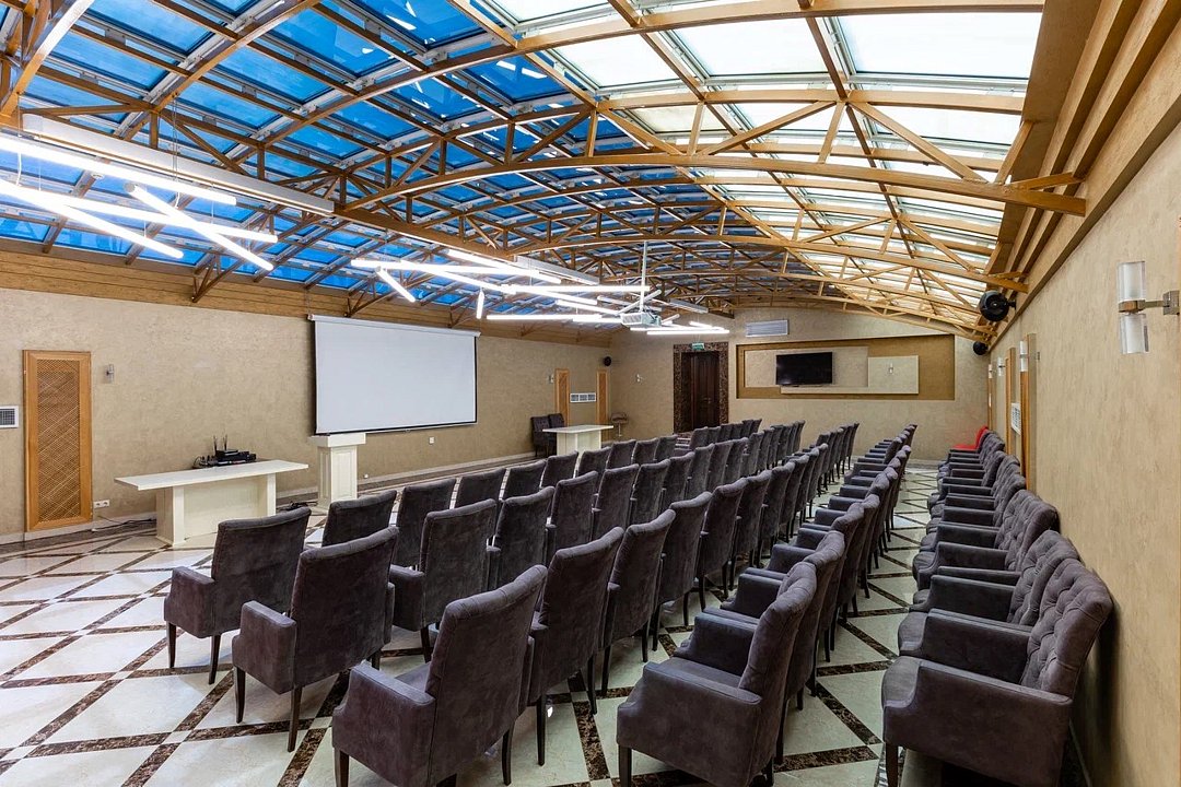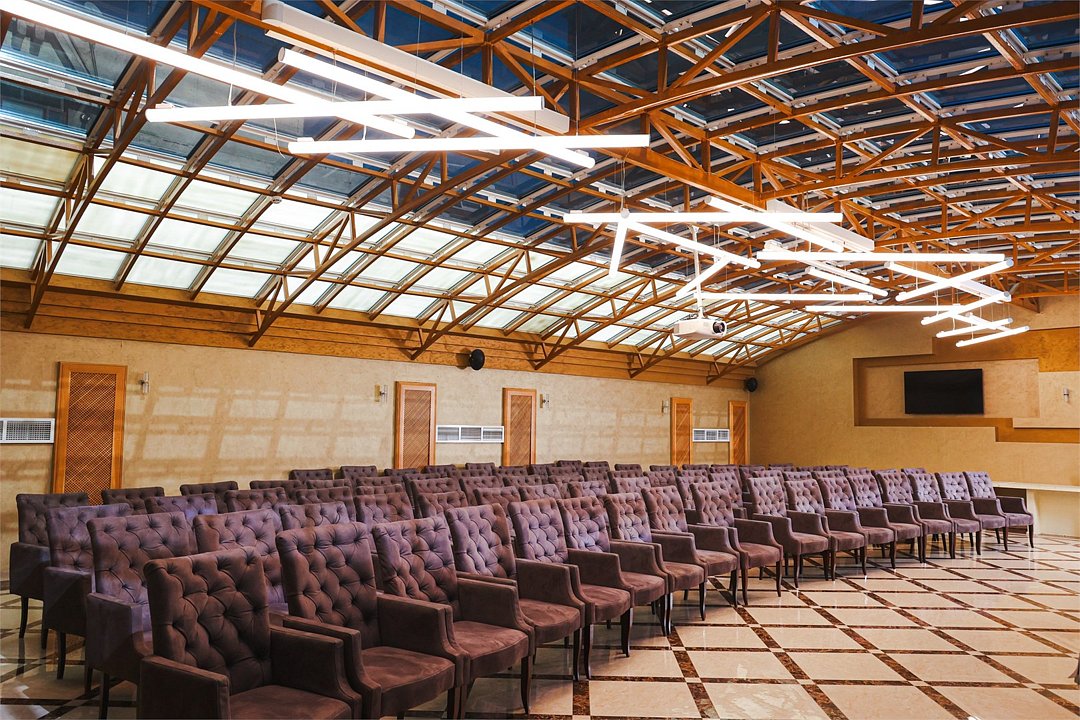 • Техническое оснащение: проектор, система звукоусиления, микрофоны и Wi-Fi для проведения презентаций и онлайн-трансляций;