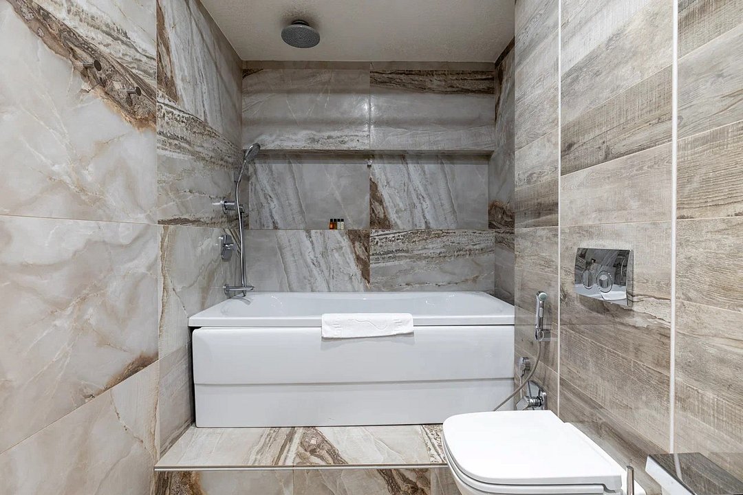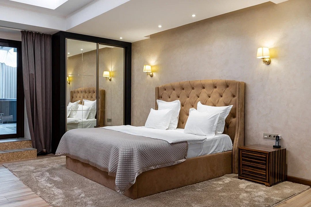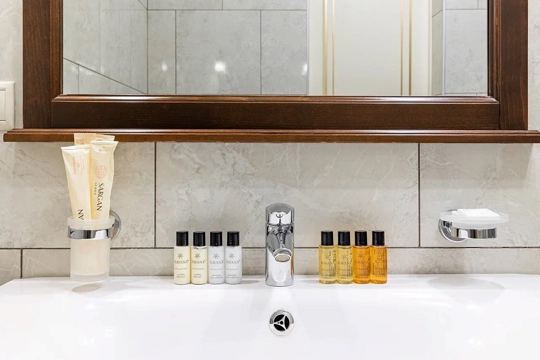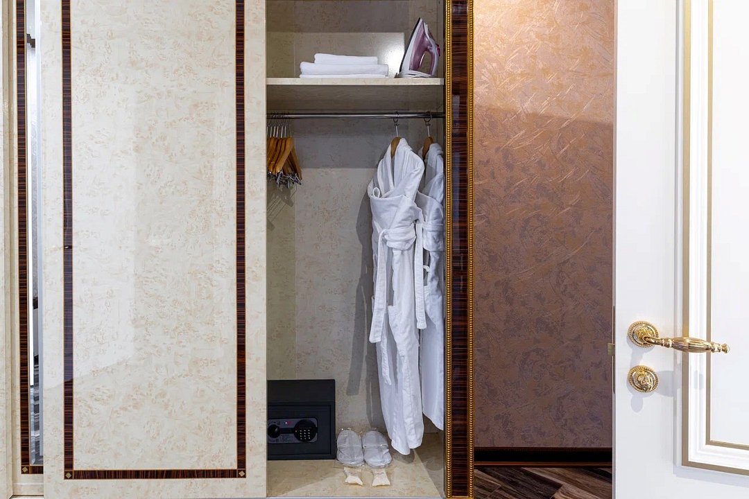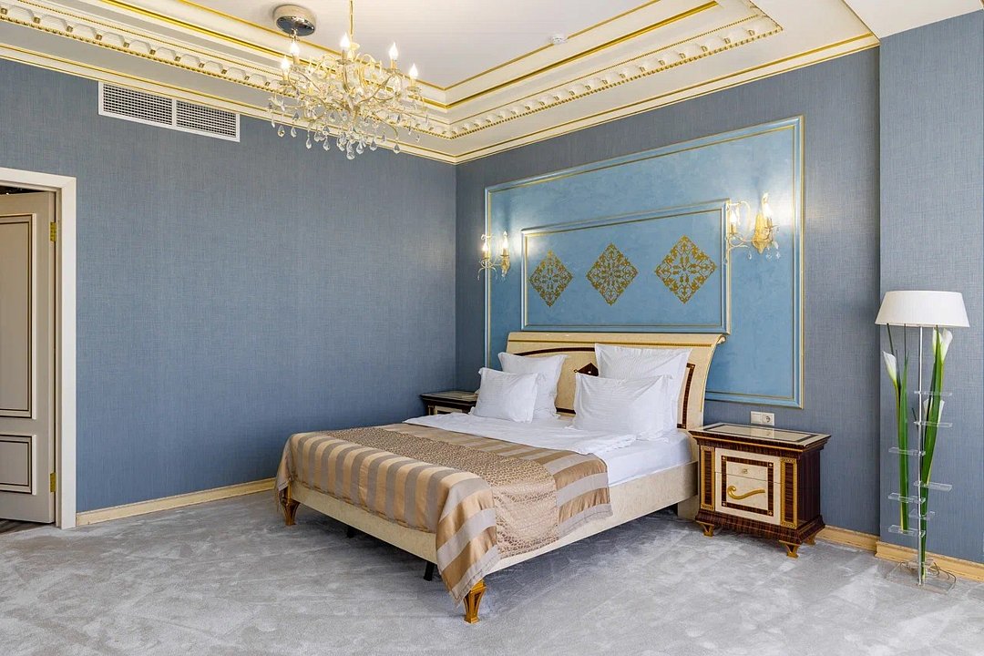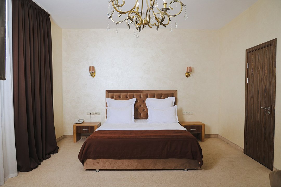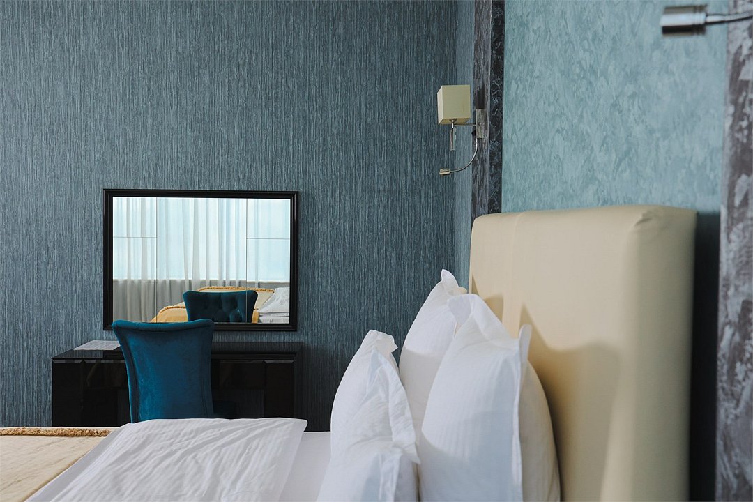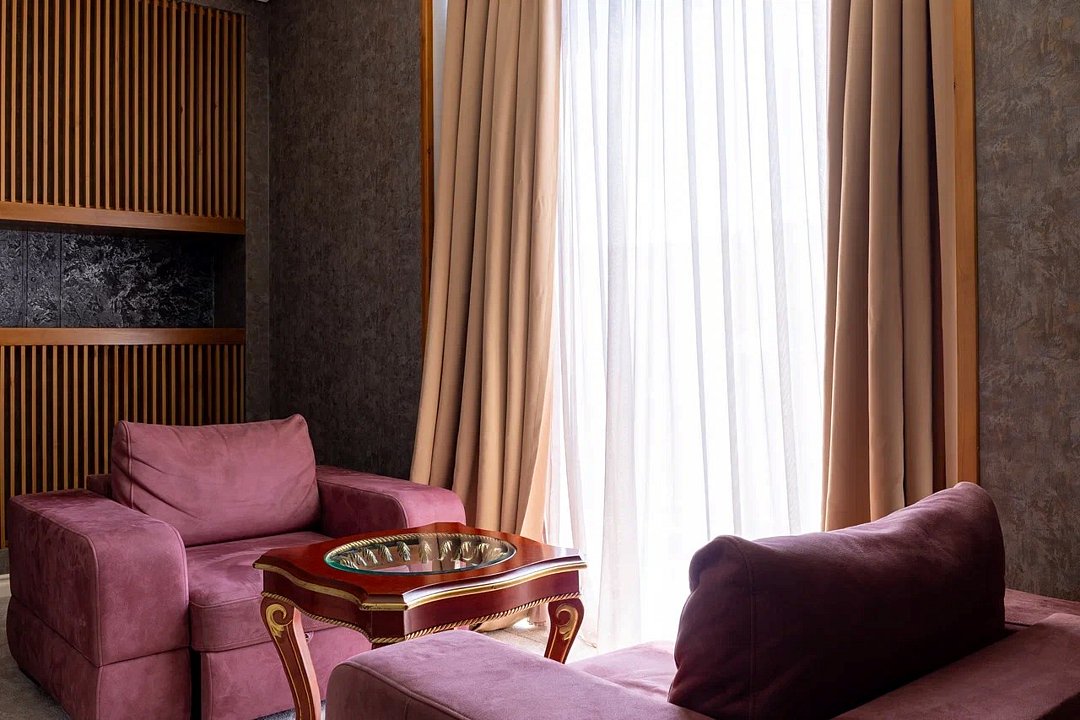 Просторный и элегантный номер, оформленный в классическом стиле, создает атмосферу утонченного комфорта. Здесь вас ждет все необходимое для незабываемого отдыха. Площадь номера составляет 85 кв.м. В спальне имеется большая двуспальная кровать с комфортным ортопедическим матрасом, мягкими подушками и одеялом высокого качества. Гости могут насладиться прекрасным видом из окна, откуда открывается панорама на городской пейзаж. Вторая комната оборудована просторным диваном и креслами, современными элементами интерьера, а также телевизором и журнальным столом. Для удобства гостей в номере имеется современный телевизор с плоским экраном и кабельными каналами, мини-бар, кондиционер, бесплатный Wi-Fi интернет, гостиные и рабочие зоны, а также отдельная ванная комната с ванной, феном, туалетными принадлежностями и мягкими полотенцами. Гостям также доступны дополнительные услуги, такие как обслуживание номеров, завтрак в номер, услуги прачечной и химчистки, трансфер, бронирование экскурсий и многое другое. Номер в нашем отеле - идеальный выбор для тех, кто ценит комфорт, уют и отличный сервис во время путешествия или командировкиУслуги и удобства