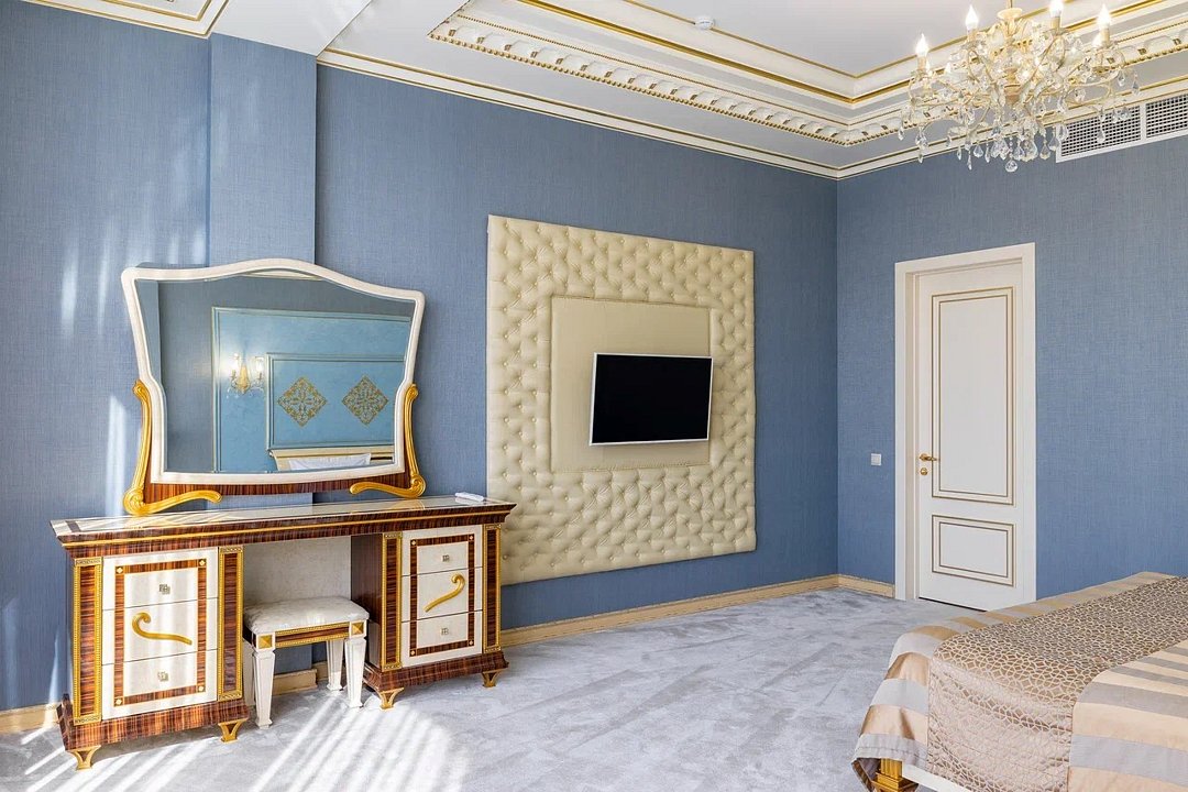 телевизор, спутниковое телевидение, Wi-Fi, интернет, телефон, кондиционер, светильник, фен, ванная комната, ванна, гидромассажный душ, теплый пол, халаты, пляжные полотенца, тапочки, косметические средства, кровать «King size», тумбы, стулья, шкаф для одежды, вешалки, письменный стол, стол для переговоров, обеденный стол, багажная тумба, зеркало, эксклюзивная мебель, мебельный гарнитур, набор посуды, обслуживание номеров, сейф, минеральная вода, чайник, унитаз, раковина, косметическое зеркало, душ, вид на город, кресло, вид во двор, стаканы, кухонная утварь, столовые приборы, туалетный столик, стул, стол, тумба, туалетный столик, туалет, цифровое тв, раскладное кресло, внутренний телефон, телевизор с плоским экраном, мини-холодильник, шкаф-купе, гостиничная парфюмерия, телевизор со Smart TV, теплые полы, три телевизора, рабочий стол, чайная станция, бутилированная водаВ гостиничном номере