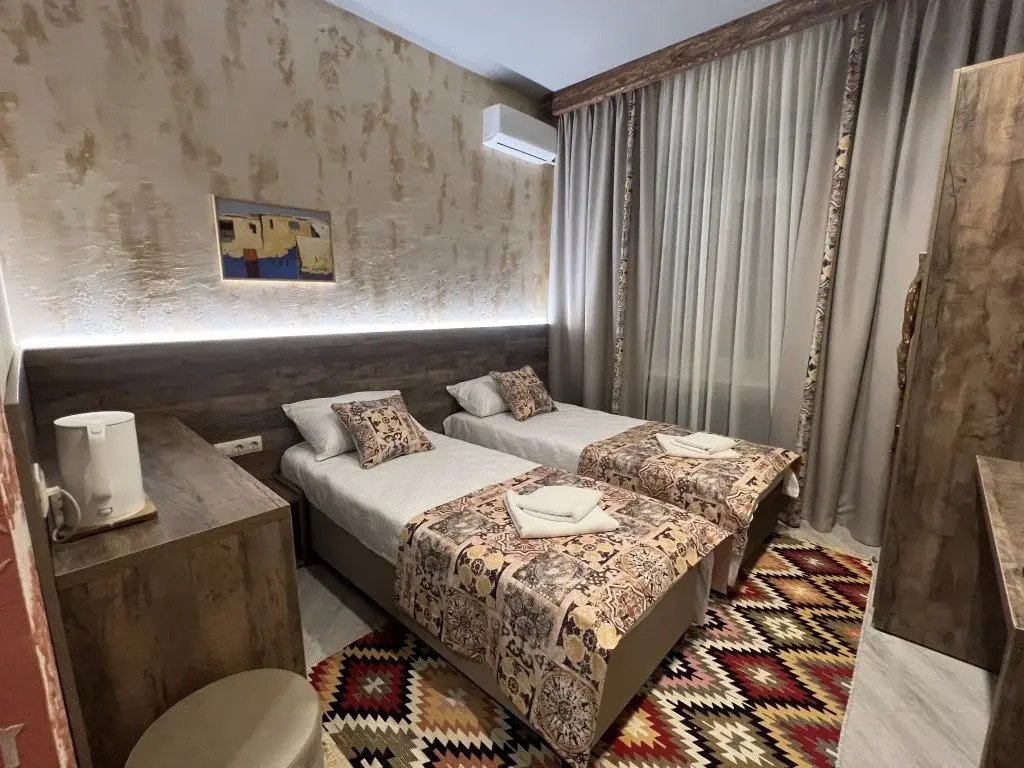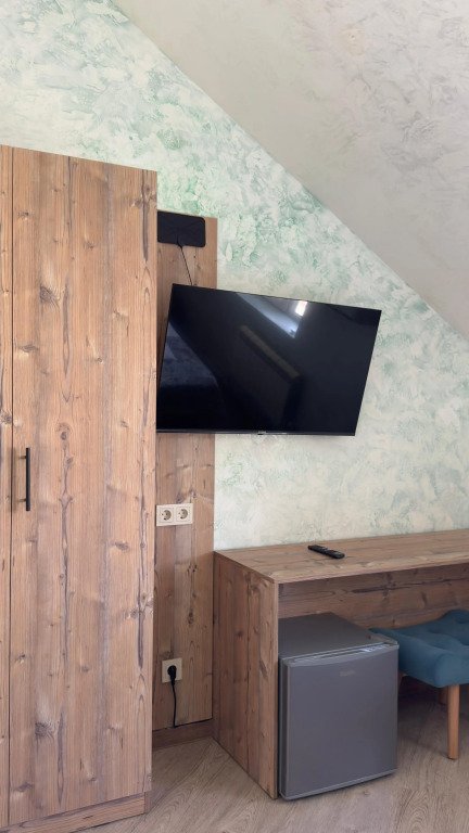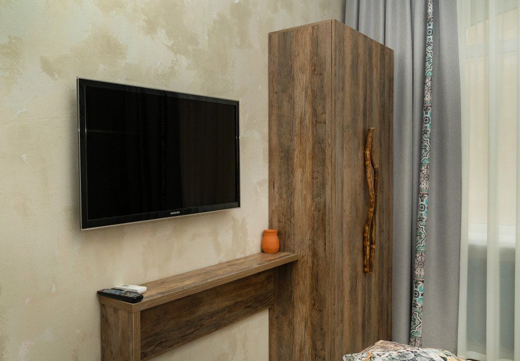 В номере вы найдёте телевизор. Оснащение зависит от выбранной категории номера.