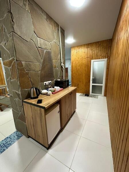 Здесь вы найдете все необходимые удобства, включая телевизор, чайник, микроволновку, посуду, холодильник и бесплатный Wi-Fi.