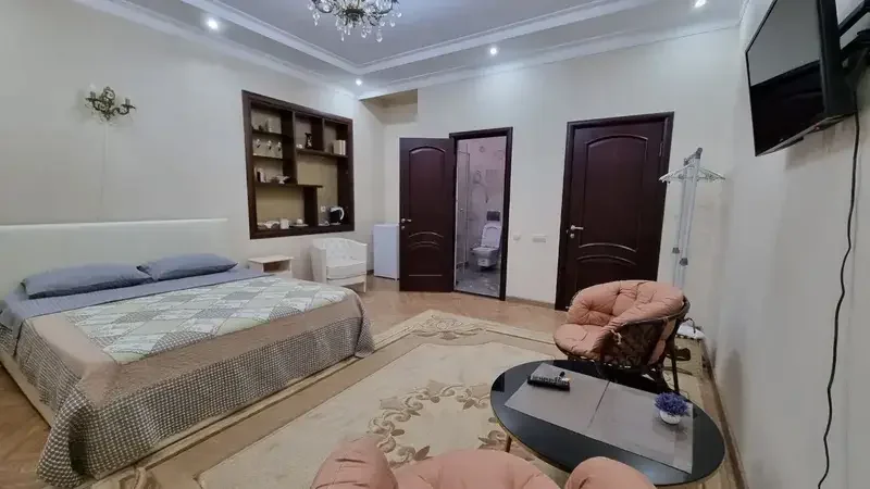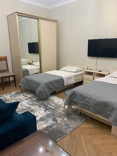 Семейный отдыхДостоинстваПрекрасное расположение – в самом центре Махачкалы. Вокруг много хороших кафе и рестораны. Прогулка до пляжа займет 10 минут, также легко добраться до железнодорожного вокзала. В номере имеется все необходимое. Постельное белье и полотенца меняют по запросу.
