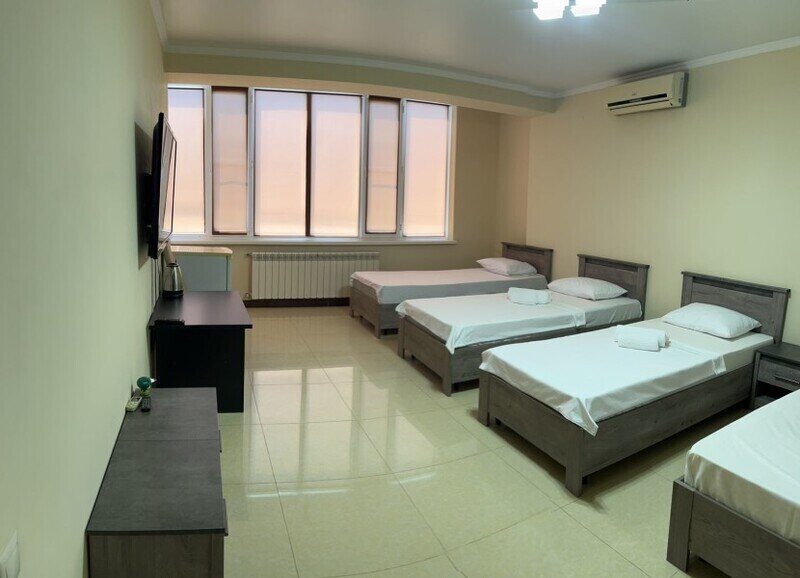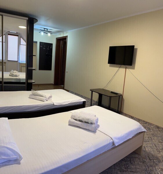 4-х местный номер с 4-мя односпальными кроватями. Все удобства в номере, WI-FI, фен, кондиционер.