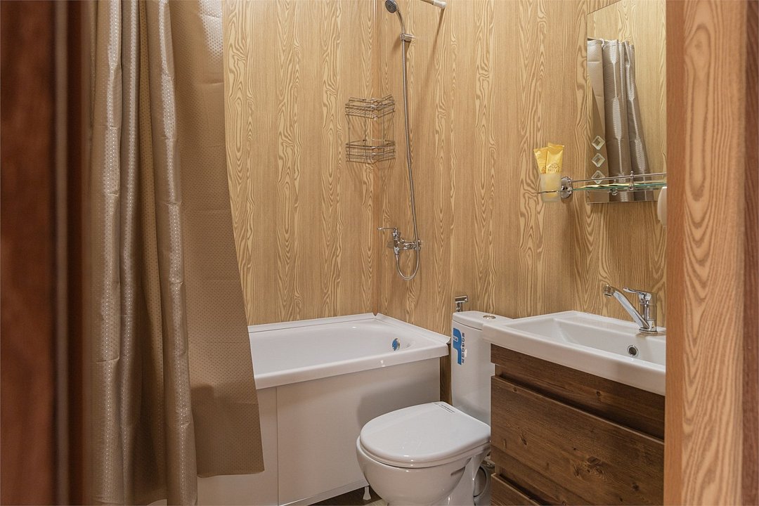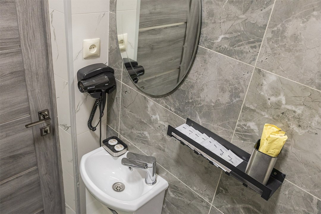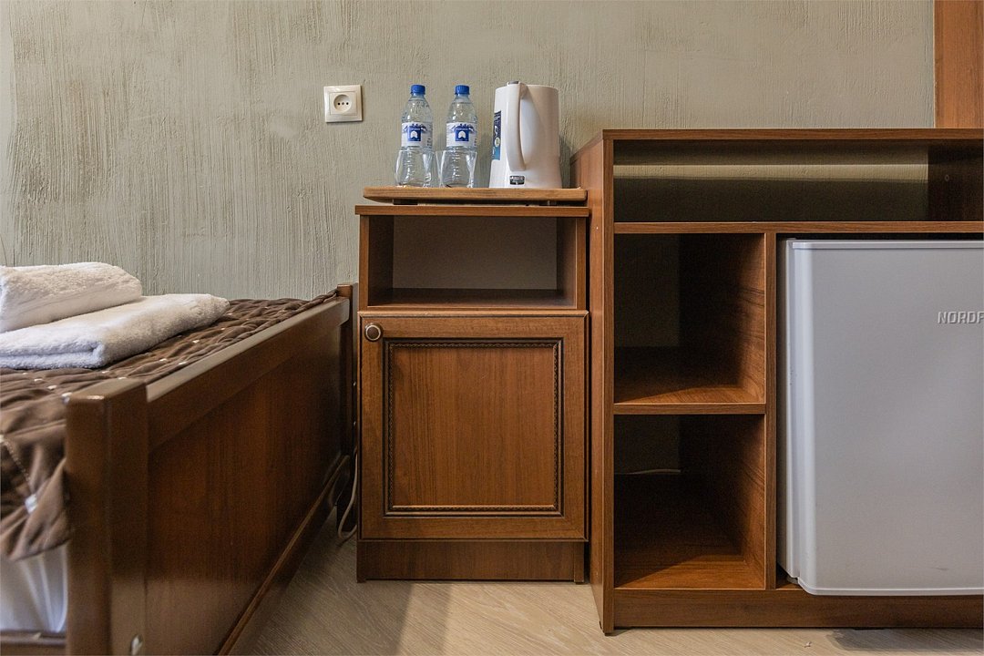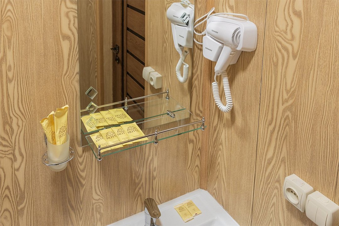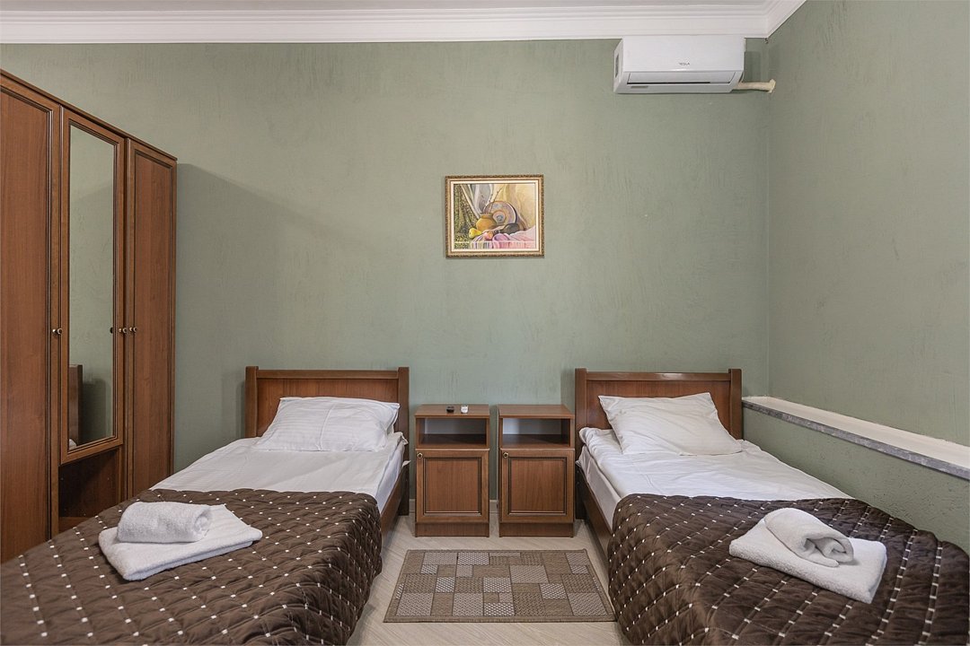 телевизор, Wi-Fi, кондиционер, фен, утюг, душевая кабина, санузел, халаты, банные полотенца, тапочки, косметические средства, две односпальные кровати, тумбы, зеркало, мини-холодильник, вешалки-плечикиВ номере