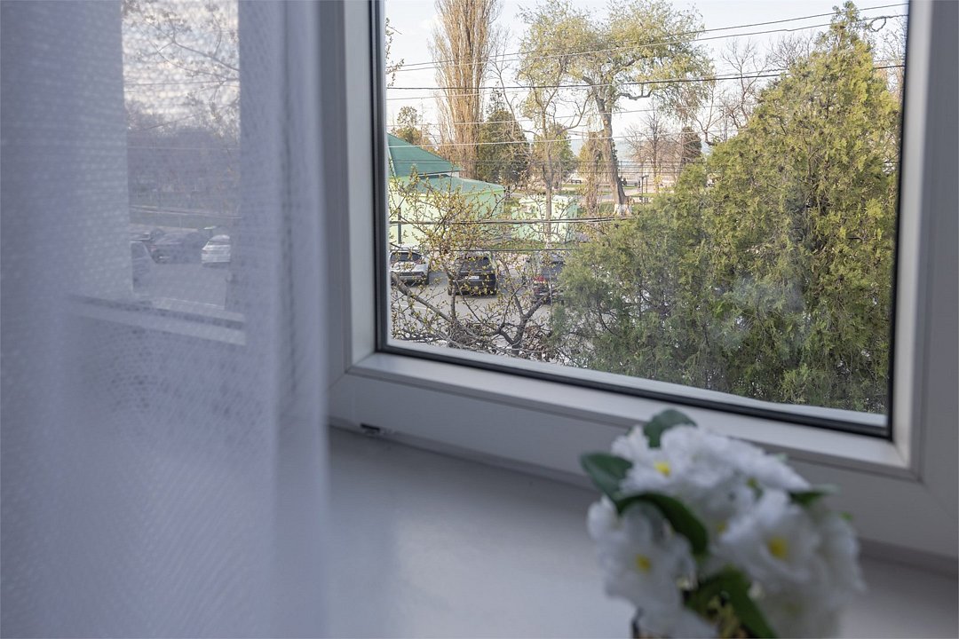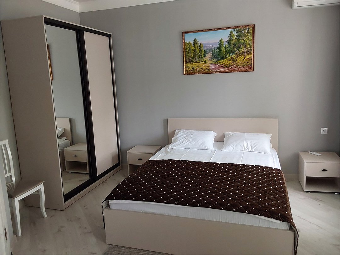 телевизор, Wi-Fi, кондиционер, фен, утюг, душевая кабина, санузел, халаты, банные полотенца, тапочки, косметические средства, двуспальная кровать, гладильная доска, зеркало, чайный набор, чайник, питьевая вода, обеденная зона, ковровое покрытие, душ, вид на город, вид во двор, стул, стол, тумба, мини-холодильник, москитная сетка, шкаф-купе, набор для приготовления чая и кофе, вешалки-плечики, бутилированная водаВ номере