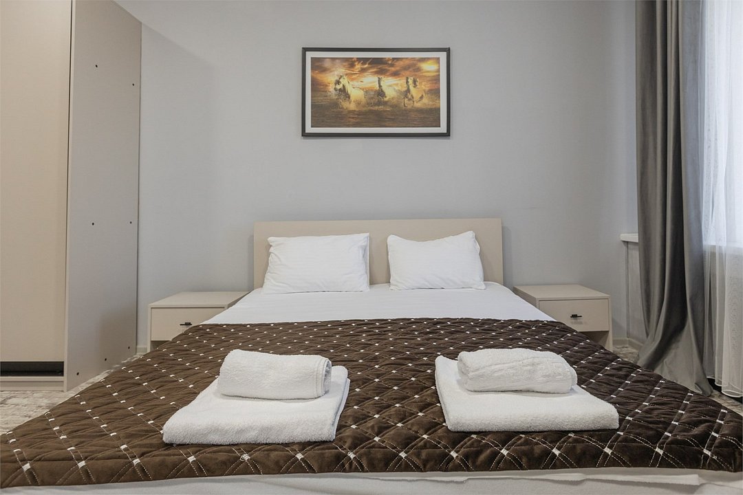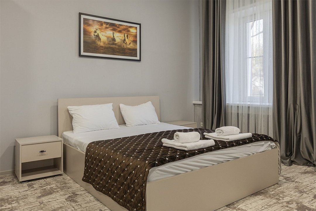 Уютный двухместный номер с большой кроватью – классический выбор для комфортного отдыха. Здесь есть все необходимое: удобные кровати, чайный набор, ванная комната, , тапочки и свежие полотенца для вашего удобства.Услуги и удобства