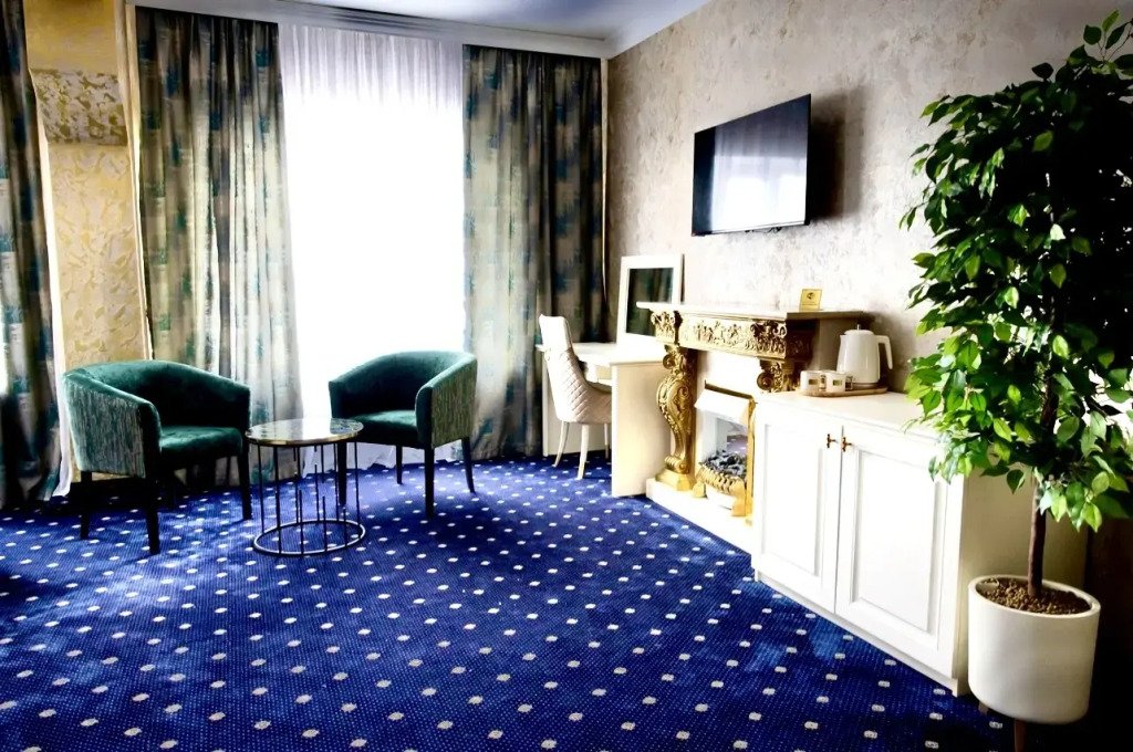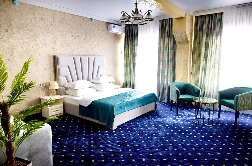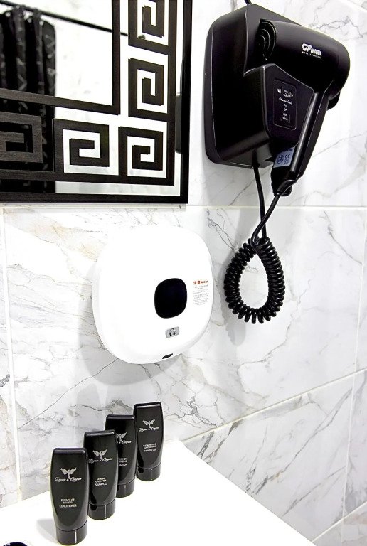 В каждом номере отеля есть телевизор, кондиционер, холодильник, сейф, электрический чайник, а также косметические принадлежности — тапочки, халаты, средства гигиены и фен.