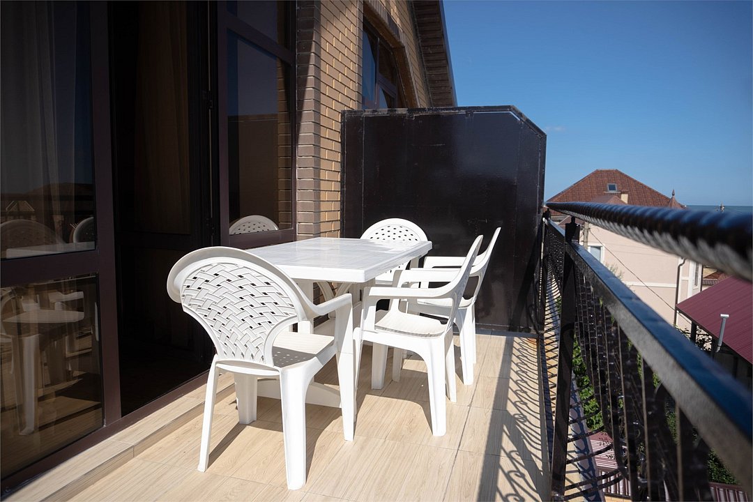Уютные номера с балконом и с видом на бассейн, во двор и частично на море. Номера оснащены плоским телевизором, холодильником, феном и т.д. В каждом есть душевая/санузелУслуги и удобства