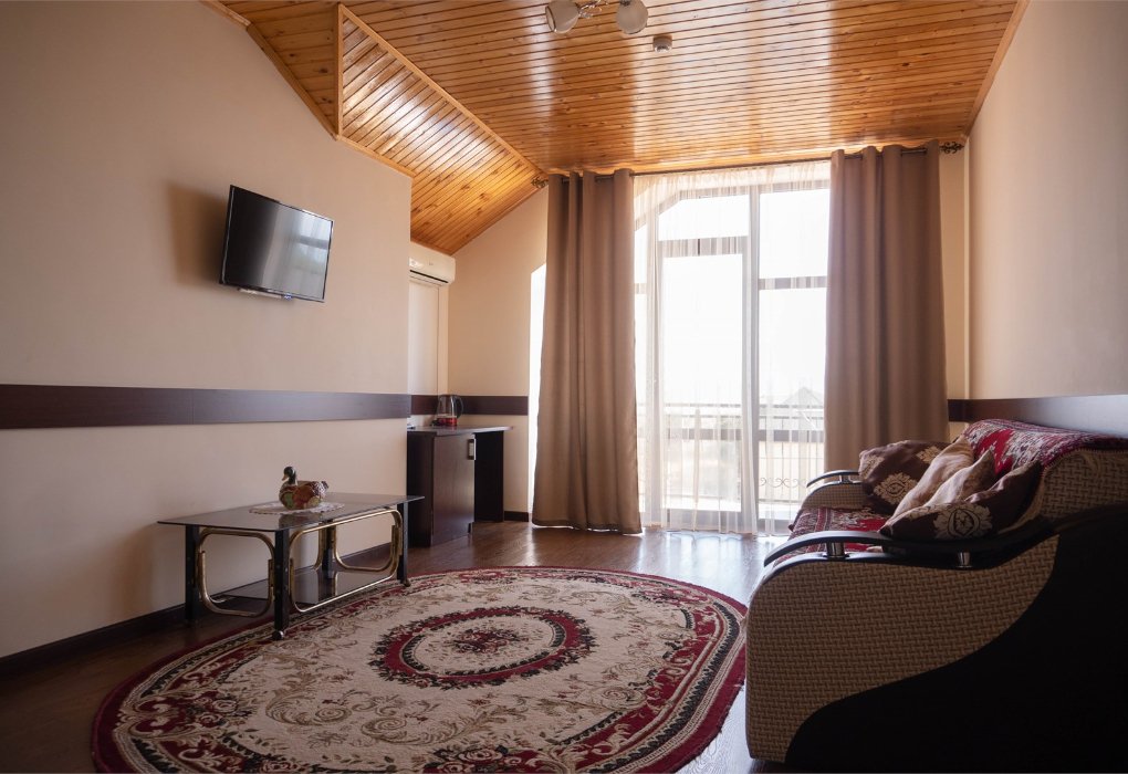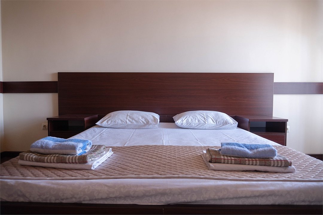Уютные номера со всеми условиями для комфортного проживания. Номера оснащены плоским телевизором, кондиционером, холодильником, феном и т.д. В каждом номере есть санузел/душевая. Гостям подают завтрак по менюУслуги и удобства