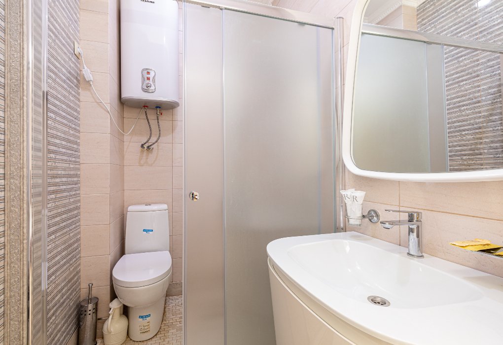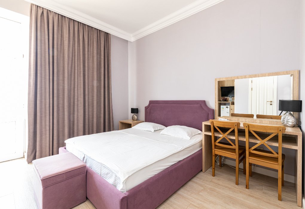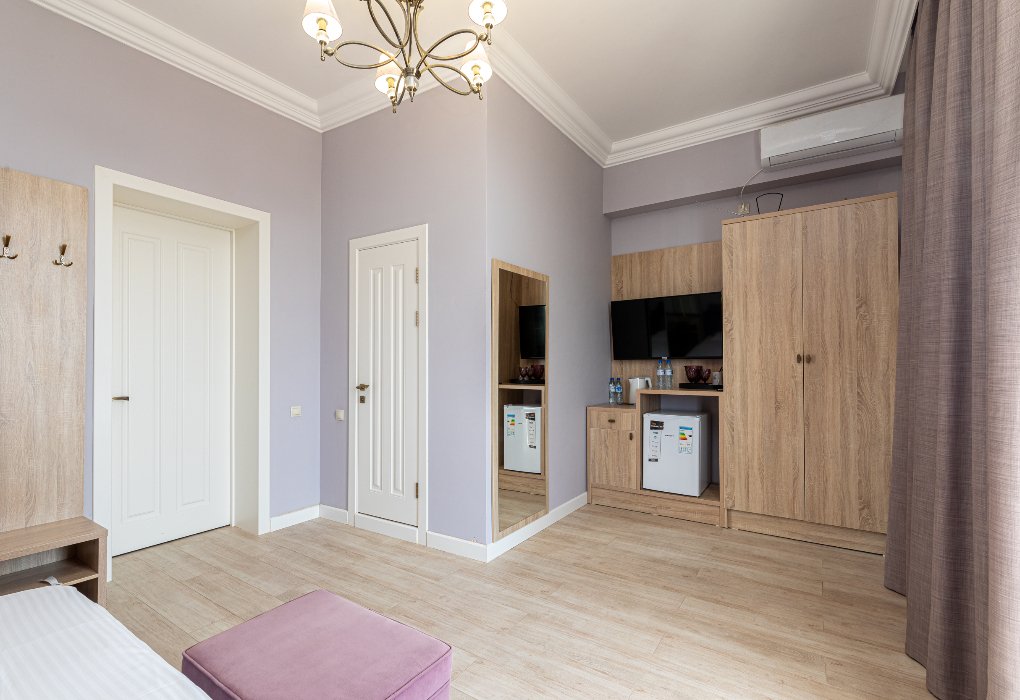 В номере вас будут ждать телевизор и халат. Оснащение зависит от выбранной категории номера.