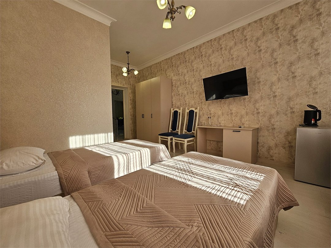 2 взрослых на основных местахВключен завтракСтандартПодробнееСтандартный двухкомнатный номер на 2-х гостей на 1 этаже с выходом прямо во двор, с двумя раздельными кроватями.