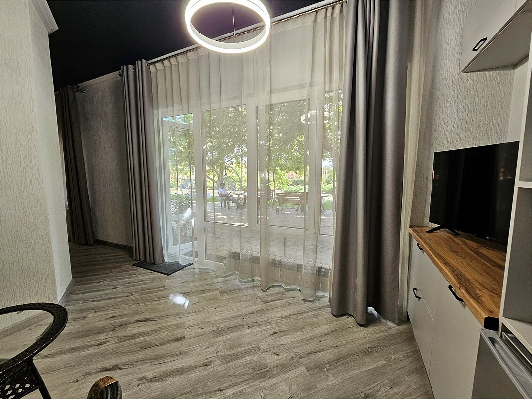Wi-Fi, интернет, холодильник, кондиционер, фен, микроволновая печь, ванная комната, ванна, халаты, банные полотенца, тапочки, две односпальные кровати, ортопедический матрас, диван, кресла, шкаф для одежды, вешалки, журнальный столик, зеркало, комод, чайный набор, чайник, унитаз, раковина, мягкая мебель, отопление, вид на сад, вид во двор, стаканы, мини-холодильник, москитная сетка, уборка номера, услуги прачечной (платно), мыло, Android TVВ гостиничном номере
