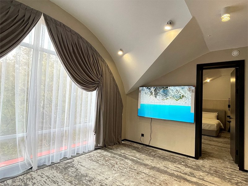 Номер категории «Люкс» — это просторный двухкомнатный номер с современным интерьером.