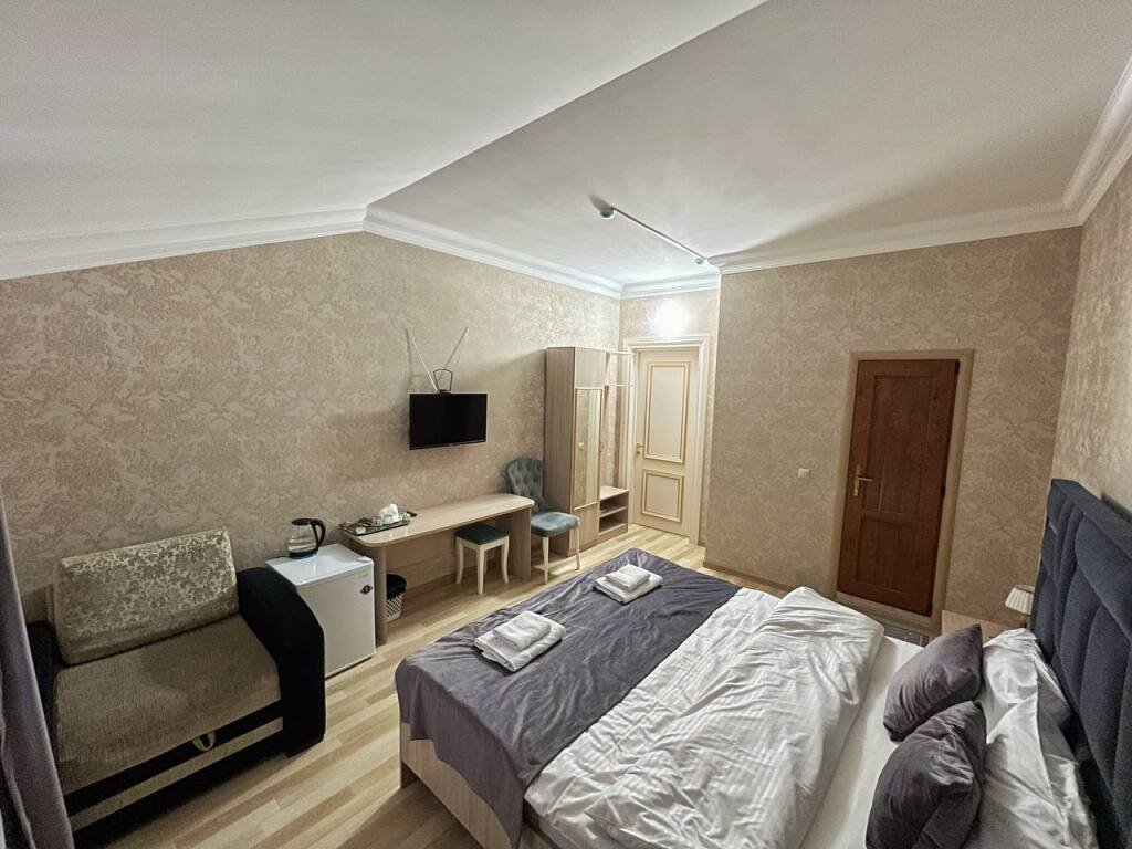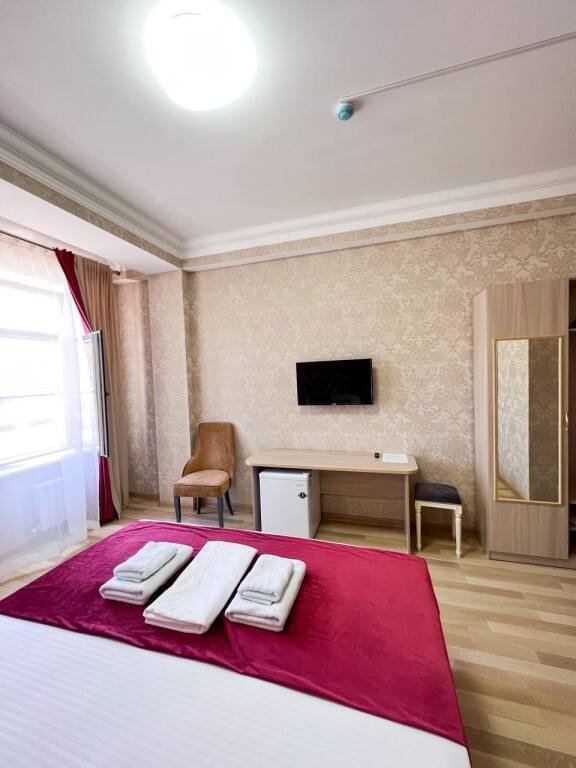 В номере гостей ждут телевизор, халат и тапочки. Оснащение зависит от выбранной категории номера.