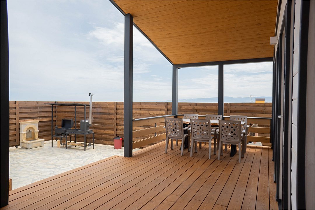 телевизор, Wi-Fi, фен, плита для приготовления пищи, кофемашина, микроволновая печь, утюг, ванная комната, душевая кабина, ванна или душевая кабина, санузел, водонагреватель, банные полотенца, пляжные полотенца, тапочки, терраса, гладильная доска, диван, стулья, шкаф для одежды, вешалки, обеденный стол, кухня, набор посуды, стиральная машина, чайник, унитаз, раковина, питьевая вода, душ, вид на море, три комнаты, три двуспальные кровати, три спальни, кухонная посуда, стаканы, столовые приборы, стул, стол, тумба, сплит-система, мангал, кухонный уголок, холодильный шкаф, гигиенический душ, морозильная камера, двуспальный раскладной диван-кровать, межкомнатная дверь, уличный стол и стулья из тикового дерева, мылоВ гостиничном номере