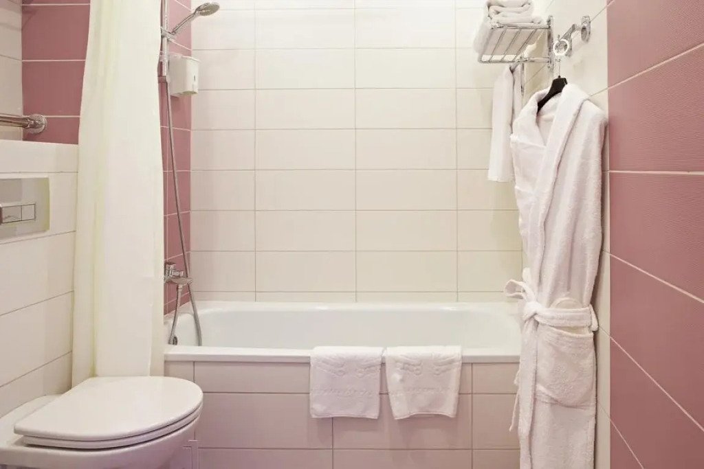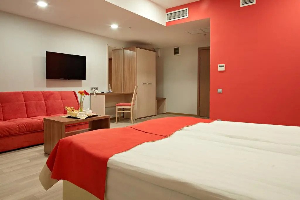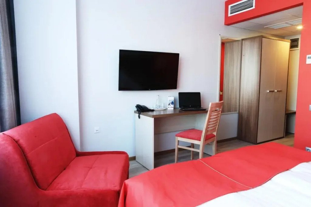 В номере вы найдёте халат и тапочки. Оснащение зависит от выбранной категории номера.